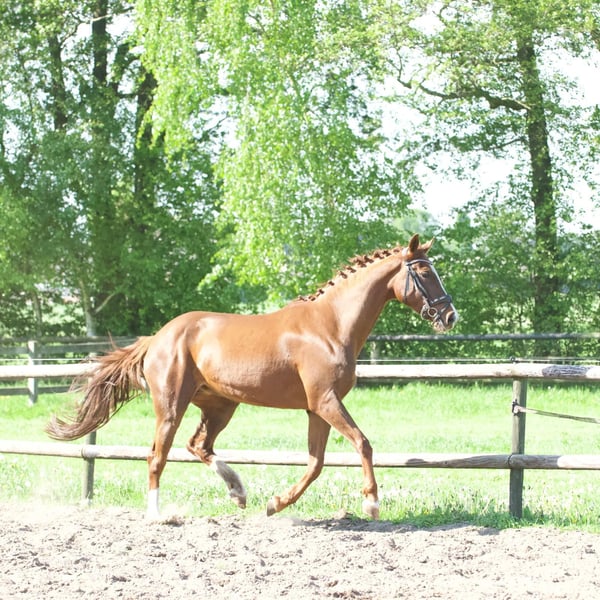 Eine wunderschöne Erscheinung mit unglaublich viel Potenzial von väterlicher und mütterlicher Seite. Aber vor allem ein super lieber Schmusepferd, das sehr ordentlich im Stall ist, einfach sauber zu halten, da immer nur ein Häufchen liegt und ich nie ein schmutziges Pony aus dem Stall geholt habe. Leider hat sich meine Gesundheit nach dem Kauf immer weiter verschlechtert, und ich bin nie wirklich zum Reiten gekommen. Sie wird nur ab und zu von lieben Menschen aus der Nachbarschaft geritten, aber sie verdient mehr Zeit und Aufmerksamkeit. Ob sie nun ohne Gebiss, mit einem Bareback-Sattel oder mit Western-Ausrüstung aufsteigt, Gras oder nasse Sandpfütze, alles ist ihr gleich und funktioniert gut. Die Schnürsenkel werden im Sattel gebunden, Telefongespräche geführt... alles scheint möglich zu sein... Super sensible Stute beim Bodenarbeit, spiegelt aber auch, wie es dir geht. Wenn sie Unterricht bekommt, sieht man das Sportblut durchkommen, aber an einer lockeren Zügel läuft sie mit mir, ob als Behinderte oder mit einem 4-Jährigen, auch lieb umher. Zur Sicherheit machen wir das selbstverständlich nur beim Ausreiten, es wurde noch sehr wenig trainiert, daher verkaufe ich sie als Freizeitpferd, denn sie ist noch nicht wettbewerbsbereit. Beim Anspringen braucht sie etwas Hilfe. Sie ist unglaublich weich im Maul. Sie kann sogar von einem 4-Jährigen am Halfter/ in der Hand mitgenommen werden und steht still, wenn sogar ein Eimer Wasser über sie geschüttet wird, brav beim Schmied, Tierarzt usw. Täglich fahren Lkw, landwirtschaftliche Fahrzeuge usw. an der Wiese vorbei, was sie ignoriert. Kurz gesagt, ein super liebes Pony, das einen tollen Besitzer verdient. Dennoch ein sehr attraktiver Preis, da sie vor 6 Jahren beim Kauf ein Luftsaugverhalten zeigte. Jetzt, wo sie seit Jahren tagsüber draußen ist und auch oft in einer Herde ist, sehen wir es nur bei Stress, wenn sie im Stall bleiben muss, z.B. bei Feuerwerk und Futter essen muss. Das schränken wir also sehr ein, wodurch wir ein feines Pony mit schöner Statur sehen. Ich hoffe, dass der neue Besitzer sehr lange Freude an ihr hat. Ich finde den Verkauf sehr schwierig, daher möchte ich das so schnell wie möglich hinter mich bringen. Bei einer netten Verbindung halte ich sie also nicht zurück; eine schnelle Abwicklung hat Vorrang.