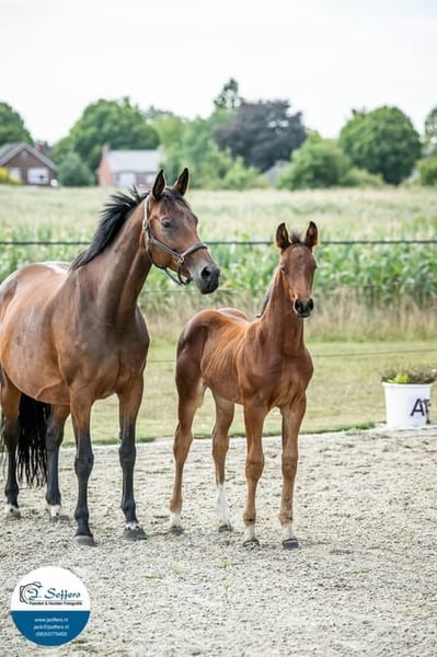 Karisma SHR is een zeer lieve merrie en super goede moeder. Ze word makkelijk drachtig ook van diepvries. Ze is lief bij de hoefsmid, tandarts, dierenarts, met opvoelen. Makkelijk te laden op de trailer, ook samen met haar veulen. Ze heeft inmiddels 4 veulens gehad. Na het 2e veulen is ze niet gedekt, maar in de sport uitgebracht in het Z2 dressuur ivm het behalen van het Sport dressuur predikaat. Daarna heeft ze nog 2 veulens gehad. Ze komt uit een zeer goed moederlijn. Haar oma is de merrie Litchy. Haar moeder Alliante heeft 3 nakomelingen op Lichte Tour niveau en 1 Dres. Internationaal YH 7 jarigen. Uit haar directe moederlijn komen meerdere Grand Prix Dressuur, lichte tour paarden, en goed gekeurde KWPN hengsten. o.a. Painted Black, Zizi Top en Grand prix paard Go Legend. Ze heeft inmiddels 4 veulens gehad en is nu drachtig ( eind mei 2026) van de getalenteerde Ortisei ( For Final x Chippendale ) Haar 2 laatste veulens van Vitalos zijn nog bij ons te bezichtigen. Klinisch en rontgenologisch goed gekeurd inclusief rug en hals ( 15 september 2021)