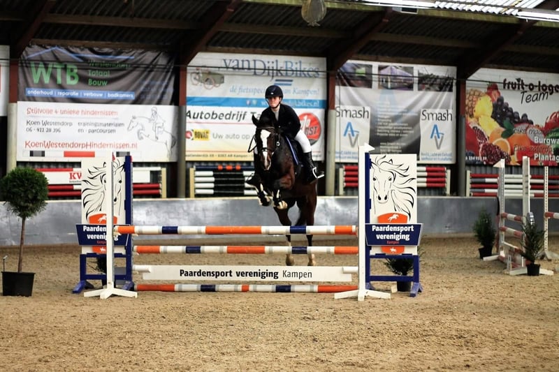 Sweet, brave allround e-pony, 156.5 cm, looking for an enthusiastic rider for both dressage and jumping, would be suitable for a somewhat advanced rider coming from a C or D pony. Enjoys going to the forest. M-Dressage. Beautiful, spacious gaits. Jumping 80/90 cm, gets enthusiastic when jumping. Given the size, also suitable for example for a mother/father, daughter/son. A pony that likes to work for you. Pedigree known to us, already in our possession for 8 years. Sucks in some air after eating pellets, but has no issues with it when wearing a band. Likes to go outside during the day, pasture/paddock and at night in the stable. Vaccinations up to date, well-behaved with the farrier, front feet shod, easy to load in the trailer, well-behaved when clipped. Prestige jumping saddle available for takeover. Vet check at buyer's expense. If interested, call 06-55383566.