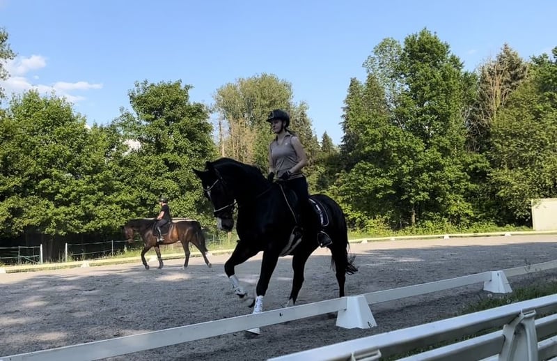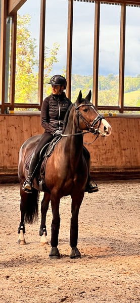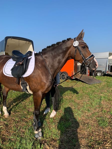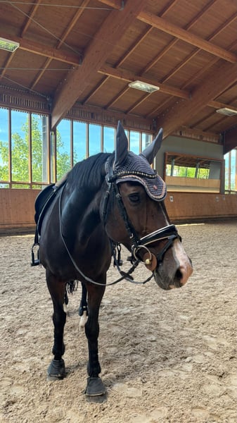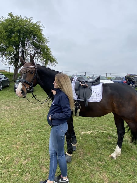 Hiermit bin ich aufgrund meiner Schwangerschaft auf der Suche nach einer 2. Reitbeteiligung für meine Stute Fidente. Die Tage in der Woche können je nach Wunsch/ Zeit variieren und können individuell pro Woche besprochen werden. Mein Pferd ist kein Gewichtsträger, deshalb solltest Du nicht mehr als 70 kg wiegen und mindestens 16 Jahre als sein. Sie hat ein Stockmaß von 1,60m und ist 15 Jahre alt. Sie lässt gerne mal die typische Stute raus, aber nie böswillig, kein Steigen, Buckeln o.ä. Du solltest mindestens auf A Niveau reiten. Sie ist kein reines Anfänger- oder Wiedereinsteigerpferd! Wir stehen auf einer wunderschönen Reitanlage in Goldbach. Wir haben eine große Halle (60 x 20), einen großen Außenplatz (65 x 25) mit Flutlicht, Führanlage und Longierzirkel. Ebenfalls direkt im Anschluss an den Stall ein schönes Ausreitgelände. Ich suche jemanden der absolut ehrlich und verantwortungsvoll ist und sorgfältig mit meinen Pferd sowie dem Material umgeht und wertschätzt. Mein Pferd wird aktuell in der Dressur auf A/L-Niveau geritten. Sie ist absolut unerschrocken, ehrlich und leistungsbereit. Regelmäßiger Reitunterricht ist am Anfang Pflicht. Gemistet und gefüttert wird an 7 Tagen die Woche. Du müsstest lediglich die Futterdosen vorbereiten. Wenn Du Dich angesprochen fühlst und reiterlich die nötige Erfahrung hast, melde Dich gerne bei mir.