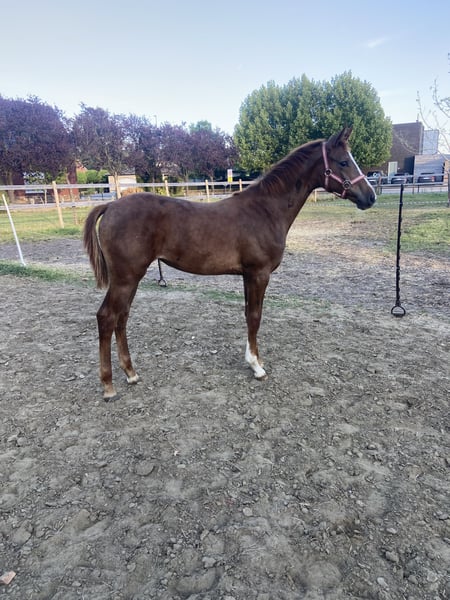 Hübscher Springfohlen zu verkaufen! Dieses Fohlen ist sehr schön gezogen, hochbeinig und wird voraussichtlich auf etwa 1,70 m heranwachsen. Das Fohlen ist gut im Handling, entwurmt, geimpft und kürzlich professionell beschlagen worden. Ein echtes Talent für die Zukunft! Vater ist New Pleasure VDL, der auf 1,40 m Niveau springt und sich in Richtung Spitzensport entwickelt. Über die mütterliche Linie stammt es vom bekannten Quidam de Revel ab – eine vielversprechende Abstammung, die nur Gutes verspricht.