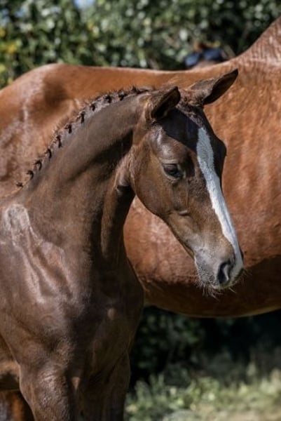 Beautiful show jumping foal for sale! This foal is very well-blooded, with long legs, and will likely mature to around 16.1 hh. The foal is easy to handle, dewormed, up-to-date with vaccinations, and recently trimmed. An outstanding prospect for the future. Sire: New Pleasure VDL, jumping at 1.40m level and still developing towards top sport. On the dam’s side, she carries the well-known Quidam de Revel in her pedigree. This combination promises a bright future.