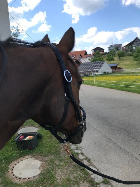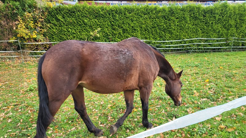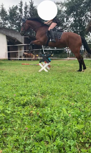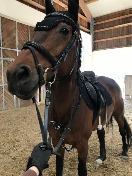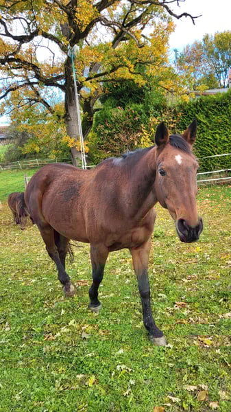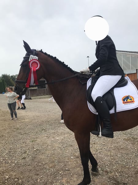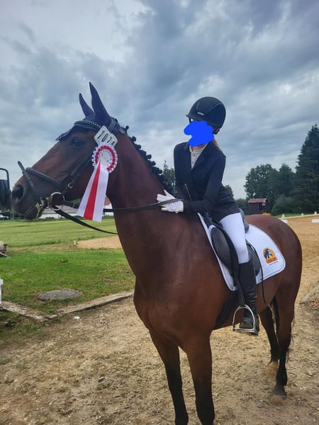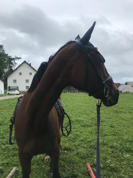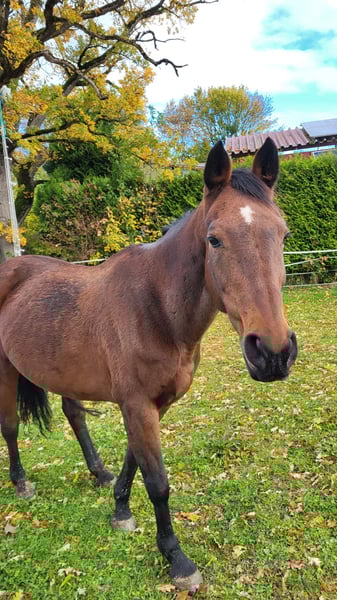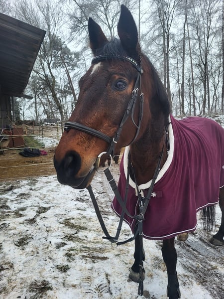 We are unfortunately offering our mare, which we purchased a year ago, back into leisure riding. She is approximately 1.60 meters tall and 20 years old. She is a KWPN mare that has foaled once before. She has been trained up to S-level in show jumping and has achieved placements up to M-level. In dressage, she has been trained up to A-level and has also been placed. We originally bought her as a competition horse for our daughter. Unfortunately, she has difficulty loading into the trailer, which makes long-term travel problematic — a detail we were not informed of at the time of purchase. Additionally, she tends to be too quick during competitions (my daughter is a beginner in jumping). Since she has not been ridden for a while, her muscles need to be rebuilt before she can be ridden again. Therefore, a trial ride is currently not possible. She enjoys going out on rides in the company of another horse. She does not like to go alone. She can be a bit spooky but is always manageable. She is not suitable for beginners, as she can become quick-tempered in the terrain. The main reason for selling her is that our gelding constantly tries to mount her when she is in heat. The osteopath advised us that she should be separated from him. Since we do not have the possibility to keep them apart, we see this as a reason to sell her to a suitable new home. She is lower in the herd hierarchy. She knows children, allows them to groom her, and children can lead her while sitting on her. She is familiar with tractors and other farm equipment. She is used to box stall and pasture turnout. Viewing is welcome.