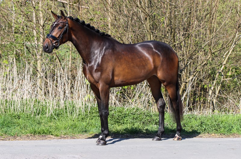 Hochwertige Dressurnachwuchsstute mit perspektivischer Qualität. Zum Verkauf steht eine äußerst qualitätsvolle Dressurnachwuchsstute mit besten Voraussetzungen für eine erfolgreiche sportliche Zukunft. Die Stute überzeugt durch ihre gute Bewegungsmechanik, natürliche Balance sowie eine sehr gute Arbeitseinstellung. Sie wurde bereits anlongiert und zeigt sich dabei taktsicher, losgelassen und lernwillig. Charakterlich präsentiert sich die Stute jederzeit ausgeglichen, nervenstark und unkompliziert im Umgang, wodurch sie sich sowohl für ambitionierte Amateure als auch für den professionellen Sport eignen wird. Ein aktueller, guter TÜV liegt vor. Für weitere Informationen oder zur Vereinbarung eines Besichtigungstermins stehen wir Ihnen gerne zur Verfügung. +4916097927359 info@equindo-dressage.de