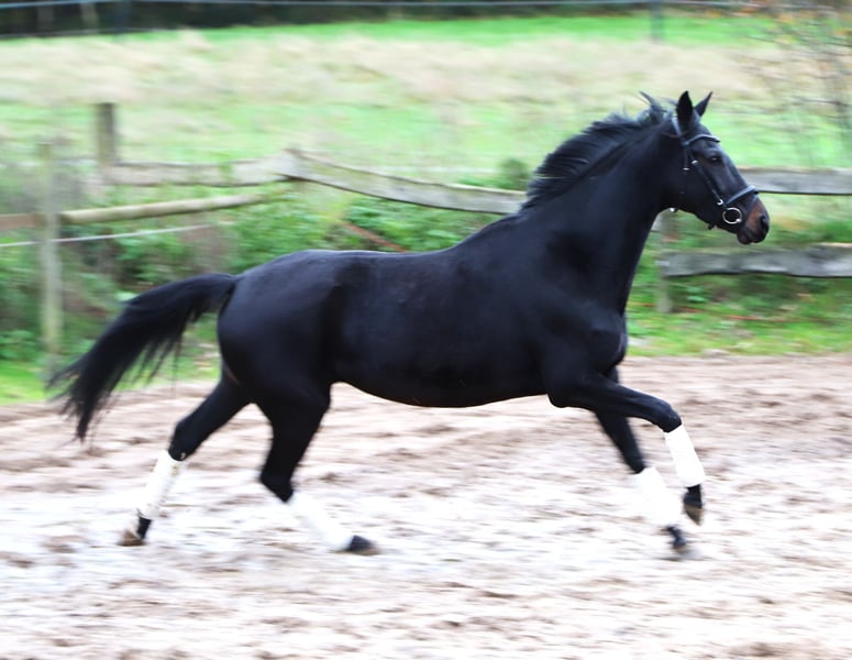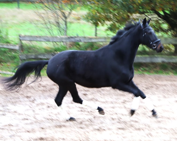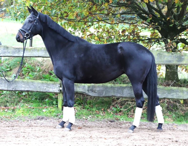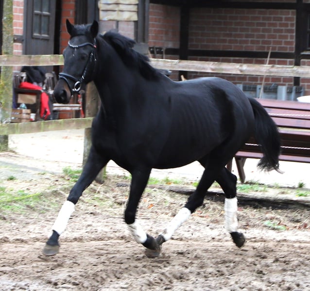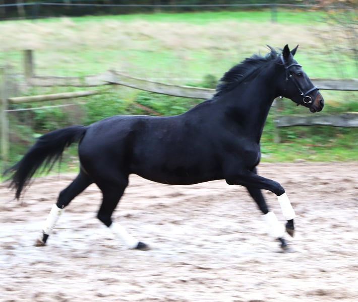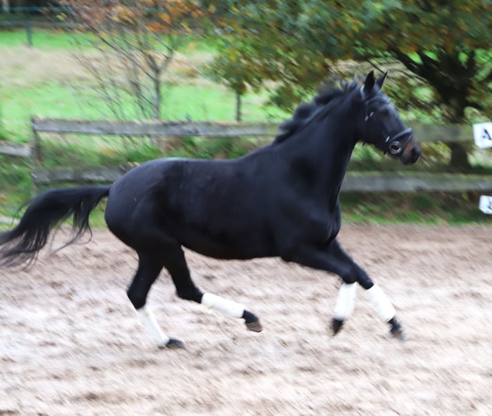 Verkaufe elegante KWPN-Stute – perfekt für die Dressur! Diese wunderschöne Rappstute wurde im Jahr 2021 geboren und beeindruckt durch ihre edle Erscheinung und ihr vielversprechendes Potenzial. Mit einem Stockmaß von 157 cm ist sie die ideale Partnerin für ambitionierte Reiterinnen und Reiter, die ihre Dressurkarriere vorantreiben möchten. Sie bringt die typischen KWPN-Eigenschaften mit – viel Bewegungsqualität, Lernbereitschaft , Ihre elegante Erscheinung und ihr angenehmer Charakter machen sie zu einer begehrten Partnerin im Training und im Turniersport. Bei Interesse oder weiteren Fragen stehe ich gerne zur Verfügung. Vereinbaren Sie einen Termin zur Besichtigung und überzeugen Sie sich selbst von diesem besonderen Pferd! Die Stute ist leicht angeritten ( an das Reitergewicht Gewöhnt ) mit Sattel und Trense Gewöhnt . Ehrlich und brav im Umgang . Leider koppt die Stute womit sie aber keinerlei Probleme hat , Deshalb weit unter wehrt abzugeben .