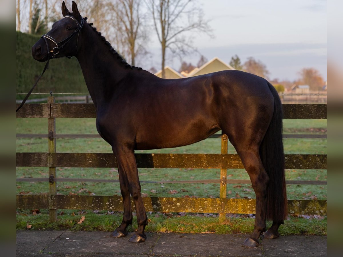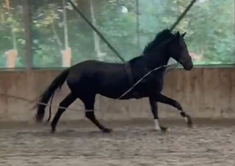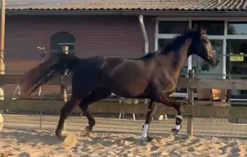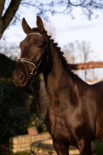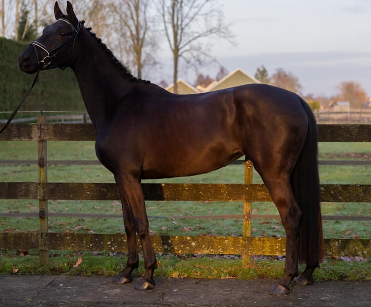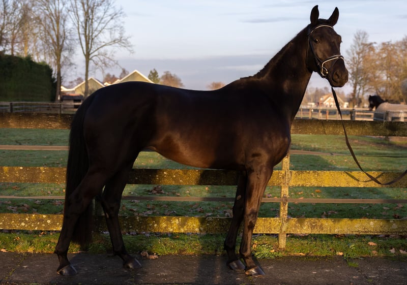 Bent u op zoek naar een echte eyecatcher voor de toekomst? Met trots bieden wij deze zeer getalenteerde, 3,5 jarige zwart/bruine dressuurmerrie aan. Met haar indrukwekkende uitstraling, sterke afstamming en royale stokmaat van circa 1.70 m heeft zij alles in huis om uit te groeien tot een succesvol sportpaard. Afstamming & potentie De vader is de bekende hengst Lowlands, geroemd om zijn fantastische instelling en drie bovengemiddelde basisgangen. Aan moederszijde vinden we de Grand Prix-hengst Desperado, wat zorgt voor extra ‘go’, souplesse en een sterk achterbeengebruik. De merrie heeft een moderne, aansprekende bouw en beweegt met veel lossigheid, balans en kwaliteit. Karakter & status Zij is recent zadelmak en pakt het werk nuchter en braaf op. In de omgang is zij eerlijk en sociaal naar andere paarden. Daarnaast is zij makkelijk bij de hoefsmid en vertrouwd met transport op de trailer.