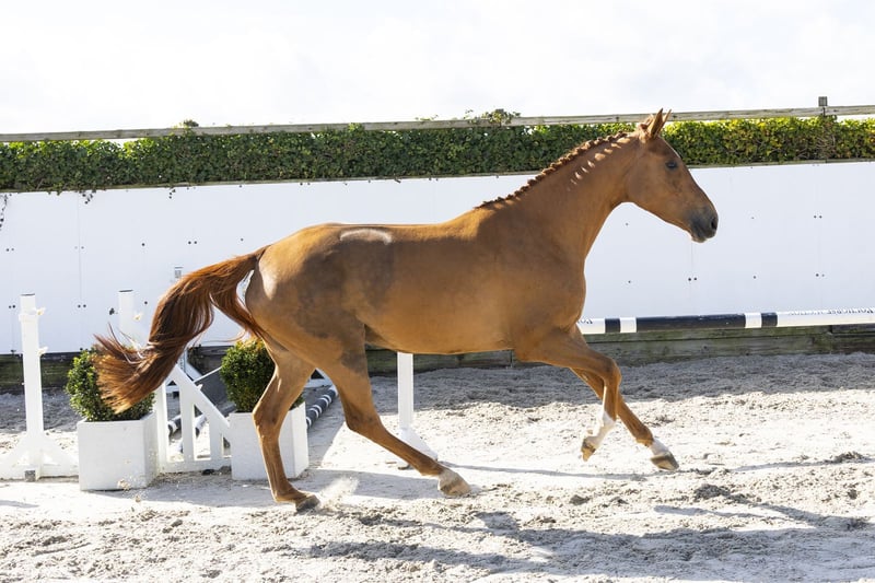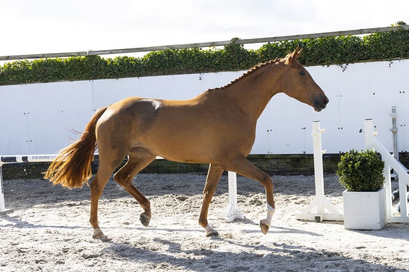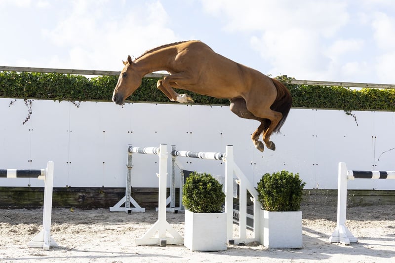 Soof V is a big, long-lined four-year-old mare with a strong model and a lot of presence. Over the jump she shows a lot of power and demonstrates plenty of scope. She comes across as careful and shows a good attitude. She moves with a lot of suppleness, is light-footed and has a good trot and canter. The engine is clearly on and she shows sufficient blood and mentality. The mare is not yet broken in and still completely untrained, but already shows a lot of quality and natural ability. In our opinion a very interesting mare with a lot of potential for the future. Sire Poker de Mariposa TN competes at 1.50m level and is a son of Nabab de Rêve (1.60m), out of the strong Ilena de Mariposa line which also performed at 1.60m level. Dam Solitaire is a daughter of Voltaire (1.60m) and adds scope and mentality to the pedigree. The damline is strong with multiple horses at level: Ferdinand – 1.50m Elba-Montanja – 1.50m Ultimo – 1.60m Londontimes – 1.60m A family with proven performance at the highest level.