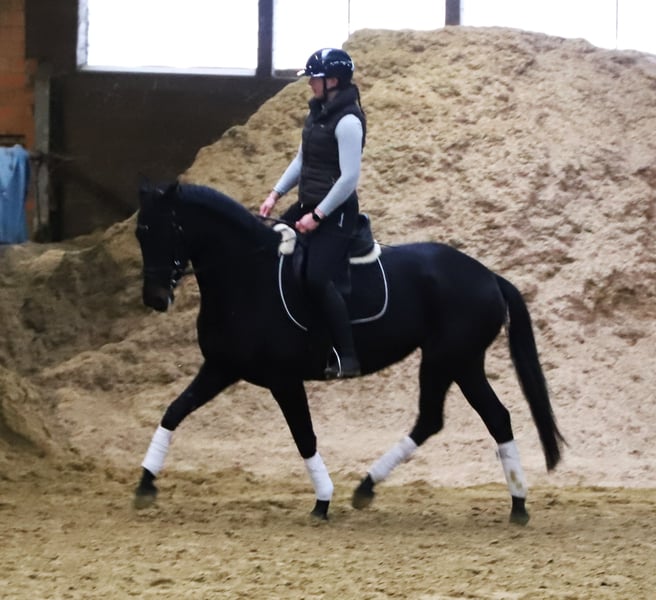 Verkaufe elegante KWPN-Stute – Perfekt für die Dressur! Angeritten !!! Diese wunderschöne Rappstute wurde im Jahr 2021 geboren und beeindruckt durch ihre ansprechende Erscheinung und ihr vielversprechendes Potenzial. Mit einem Stockmaß von 158 cm bietet sie die ideale Größe für ambitionierte Reiterinnen und Reiter, die auf der Suche nach einer talentierten Dressurpartnerin sind. Sie ist eine typische KWPN mit hervorragender Grundqualität, Elastizität und Bewegungsstärke. Ihre aufgeschlossene und freundliche Art macht sie zu einer angenehmen Begleiterin im Alltag und im Training. Diese junge Dressur-Stute ist bereit, ihre Karriere unterm Sattel zu starten und begeistert durch ihre Lernbereitschaft und ihren Willen. Sie eignet sich sowohl für den ambitionierten Amateur als auch für den professionellen Turnierreiter. Bei Interesse oder für weitere Informationen stehe ich gerne zur Verfügung. Vereinbaren Sie einen Termin und überzeugen Sie sich selbst von diesem vielversprechenden Pferd! Leider koppt die Stute hat aber keine Probleme aus diesen Grund unter wehrt . weitere Infos 01722734811 Vater -Jayson-Jazz Mutter -San Brentano - Sandro Hit