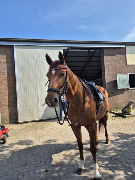 Met veel pijn in ons hart moeten we door privé omstandigheden, een nieuw huisje zoeken voor ons vriendinnetje Prya. Pryamora is een vosmerrie van 5 jaar en ongeveer 1.67 hoog. Ze is geboren op 1- 6- 2020. Prya haar afstamming is Kjento x Crack C. Prya is best een pittige dame die even moet weten wie er de baas is, maar als je haar eenmaal voor je hebt gewonnen gaat ze voor je door het vuur. Prya is in de omgang super braaf maar blijft een jong paard. Prya is ingereden maar nog niet goed doorgereden. Door haar soms wat pittige karakter is ze niet geschikt voor een beginnende ruiter. Wij zijn zelf al met andere paarden kleine rondjes erop naar buiten geweest, dit vind ze mega leuk om te doen. Prya is best een sociaal paardje en geniet dan ook van een vriendje of vriendinnetje bij haar buiten. Denk jij dat je iets voor prya bent en ben jij benieuwd naar wie ze is? Of heb je eventueel vragen? Neem dan zeker contact op.