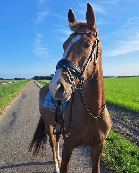 Onwijs knappe, aanhankelijke merrie! 𝙎𝙣𝙚𝙡𝙡𝙚 𝙖𝙛𝙝𝙖𝙣𝙙𝙚𝙡𝙞𝙣𝙜 𝙝𝙚𝙚𝙛𝙩 𝙫𝙤𝙤𝙧𝙠𝙚𝙪𝙧 (!!𝗣𝗿𝗶𝗷𝘀 𝗶𝘀 𝗯𝗲𝘀𝗽𝗿𝗲𝗲𝗸𝗯𝗮𝗮𝗿 𝗶𝘃𝗺 𝗴𝗲𝗲𝗻 𝘃𝗮𝘀𝘁𝗲 𝗿𝘂𝗶𝘁𝗲𝗿!! Paard wordt dus niet fanatiek getraind, wel aan longe) Video's op aanvraag!! Fijne merrie van +/- 167cm met goede gangen en een krachtige galop! Niet geschikt voor een beginnende of onzekere ruiter, ze doet het beste bij een ruiter die haar uitdaagt Tuigmerrie van Idol x Fabricius uit 2017 ● Mayline (Officieel Misstopia Idol x Fabricius) ● 8 jaar (2017) ● 167cm hoog (on officieel gemeten) ● Misstaat niet in de dressuurring vanwege haar ruime gangen en heeft een prachtige galop! ● B/L niveau, 2 wedstrijden gestart met goede punten! B geklasseerd, in training L ● Meegeweest naar bos en strand wat ze braaf deed. ● Klinisch goed gekeurd eind 2023, schiefel rechtsvoor geen bemerking voor de sport. ● Lief op stal en in de weide met anderen. ● Geen typisch 'merrie gedrag' ● elke 6/7 weken bekapt ● Geënt, ontwormd en tandarts is recent geweest. Voor May ben ik opzoek naar een ruiter met veel ruiter gevoel die haar mentaal uitdaagt. Ze is een paard waar je een diepe band mee op kan bouwen en ze wilt graag met je aan het werk! Bij May gaan haar hoofdstel, oornetje, deken, halster & touw mee zodat ze veilig en vertrouwd op pad kan! Zadel is mee over te nemen voor lichte meerprijs! Prijs bespreekbaar bij snelle afhandeling. Dit ivm dat ik geen vaste ruiter heb voor paard waardoor ze niet fanatiek getraind wordt momenteel. Dit is uit te leggen in pb
