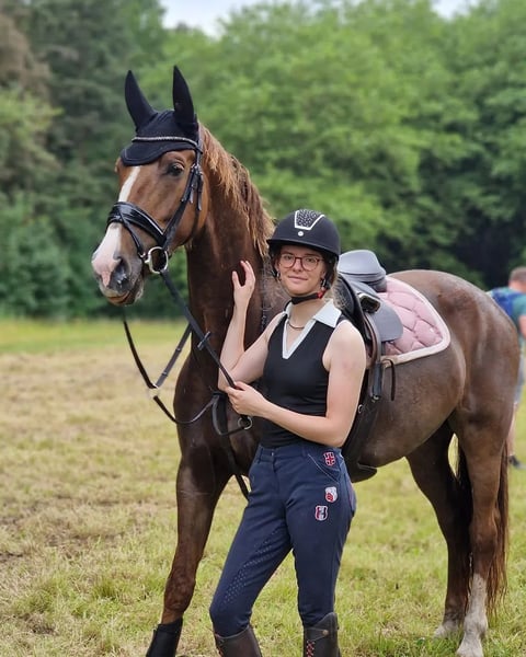 Yegua increíblemente dulce y afectuosa! La rápida respuesta de esta yegua es su gran preferencia. (¡El precio es negociable, pero no incluye montura fija! Por lo tanto, el caballo no recibe entrenamiento intensivo, solo trabajo en la longe). ¡Videos disponibles bajo petición! Bonita yegua de aproximadamente 1,67 m con buen movimiento y una galopa potente. No adecuada para jinetes principiantes o inseguros, funciona mejor con un jinete que la desafíe. Yegua de doma de Idol x Fabricius, nacida en 2017. ● Mayline (oficialmente Misstopia Idol x Fabricius) ● 8 años (2017) ● 167 cm de altura (medida no oficial) ● No desentona en la pista de doma gracias a su amplio movimiento y su hermosa galopa. ● Nivel B/L, ha participado en 2 competiciones con buenos resultados. Clasificada en B, en entrenamiento en L. ● Ha estado en bosque y playa, comportándose de manera tranquila. ● Revisada clínicamente a finales de 2023, sin observaciones en la pata derecha delantera, apta para competición. ● Cariñosa en establo y en paddock con otros caballos. ● Sin comportamientos típicos de yegua. ● Recibe herraduras cada 6-7 semanas. ● Vacunada, desparasitada y con revisión dental reciente. Para May, busco un jinete con mucha sensibilidad que la desafíe mentalmente. Es un caballo con el que se puede construir un vínculo profundo, y le encanta trabajar contigo. A May le acompañan su cabezal, orejera, manta, brida y cuerda para que pueda viajar segura y confiada. La silla se puede adquirir por un pequeño coste adicional. Precio negociable por una rápida decisión. Esto se debe a que actualmente no tengo jinete fijo para ella, por lo que no recibe entrenamiento intensivo. Más detalles en privado.
