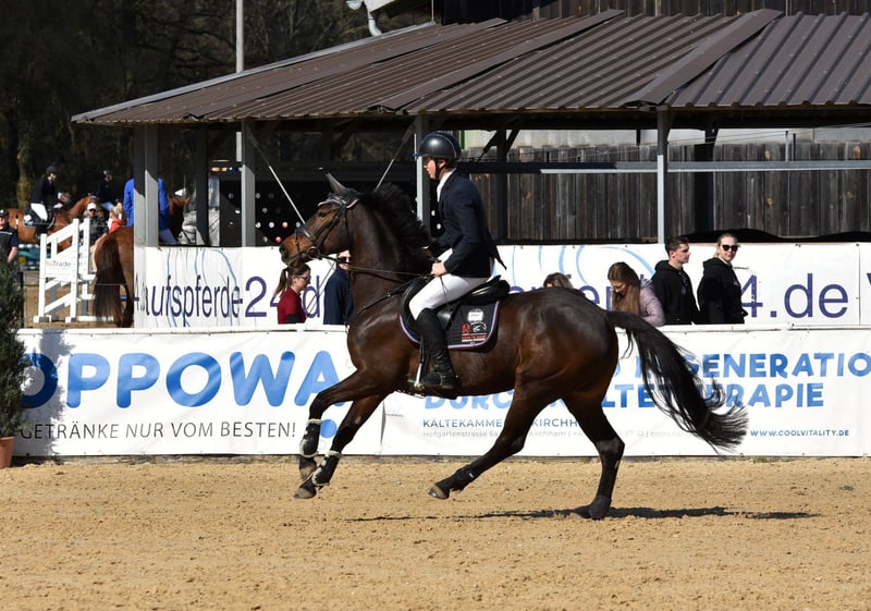 Rena è una bellissima, dolcissima e simpatica cavalla. L'abbiamo acquistata nel ottobre 2024 per nostro figlio, che purtroppo è cresciuto così tanto da essere semplicemente troppo alto per lei, con oltre 180 cm. Finora ha saltato 10 percorsi, di cui 9 senza errori; un abbattimento è stato causato da una cattiva guida del cavaliere. Rena è già arrivata terza in un giro veloce di 125. Poiché è molto delicata da cavalcare (la montiamo con una morso in gomma molto morbida), ha bisogno di un cavaliere che sia almeno equilibrato. Finora salta su ostacoli grandi e ravvicinati - non si è mai fermata. Ha un temperamento molto piacevole. Può essere cavalcata molto lentamente, ma anche molto velocemente. Aspetta sempre pazientemente il cavaliere. Carica da sola il rimorchio ed è sempre calma e equilibrata nel maneggiarla. Una vera perla.