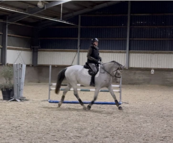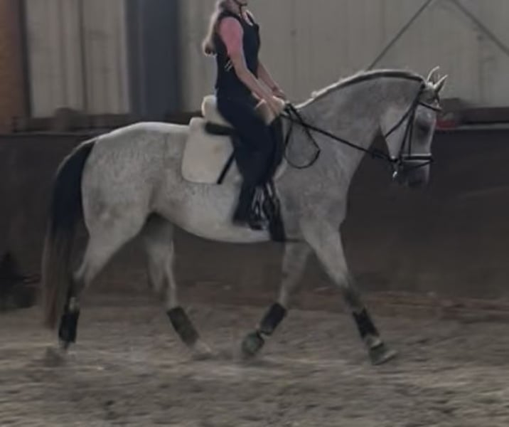Mi yegua de 9 años (con pasaporte FEI válido y excelente linaje) busca urgentemente un nuevo hogar. La joven que la montaba ya no tiene interés en la equitación. En su juventud, la yegua tuvo un potrillo y, a los 6 años, fue presentada en concursos de salto en Alemania hasta 1,10 m y en los Países Bajos hasta 1,20 m. Después, volvió a tener un potrillo. Posteriormente, fue montada por una joven sin experiencia en salto, y ha saltado hasta la altura de L. También ha estado en campo, en pista de doma y en indoor. Es un caballo muy amigable y cariñoso, que no muerde ni patea. Además, no es nerviosa. En la cuerda de manejo entra sin problema, y es tranquila durante el lavado, la visita del herrador y el veterinario. Mide 1,68 m y tiene un potencial de salto enorme. En entrenamiento, ha saltado hasta 1,35 m con un joven jinete. Su linaje habla por sí mismo. El dentista la revisó en verano y está vacunada regularmente. Es una yegua sin desgaste, ya que tuvo dos potrillos, y cuenta con un reciente informe radiológico de buena calidad de sus patas, cuello, espalda y columna. Lamentablemente, lleva medio año en la pradera y en box por falta de jinete. Esperaba que la joven no abandonara el deporte ecuestre, pero ahora necesita urgentemente un nuevo hogar, ya que las praderas están cerradas. Este tesoro es más que interesante para el salto de alto y la cría. Estoy abierto a ofertas realistas. La yegua se vende por el estado no entrenado y por ello a un precio muy por debajo de su valor. No es posible realizar una prueba de salto o montar en vista de que solo ha estado en pradera últimamente. Por consulta, podemos enviar más videos. Salta sin espuelas ni látigo, tiene un carácter muy dispuesto y es muy cómoda en el asiento. Nunca ha rechazado un salto. Corre sin herraduras. Por favor, solo interesados serios.