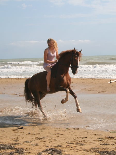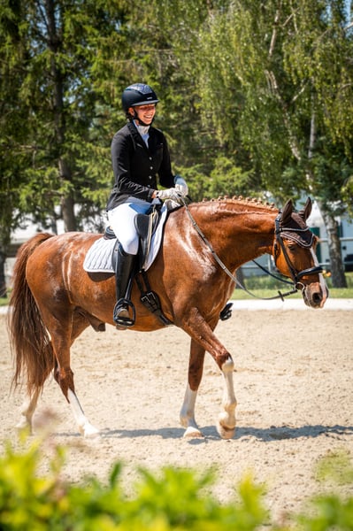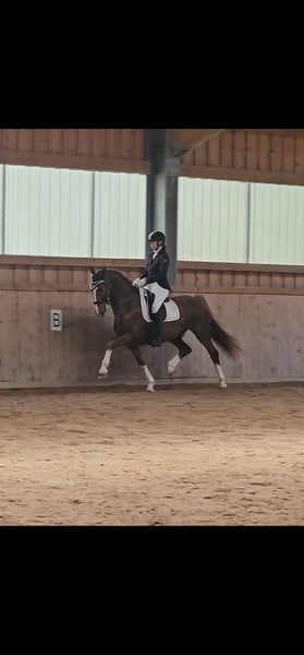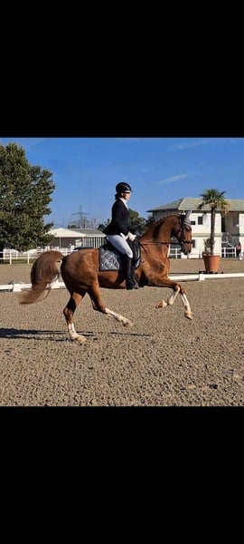 Lexington is a true gem. He has no vices, is easy to ride, and very well-behaved. He is a reliable trail horse and also calm and steady in the arena. He has won dressage tests and is already jumping Piouretten confidently. He can be a bit uncertain during flying changes at times. Occasionally a bit watchful, but still willing to continue riding calmly. Up to medium level, he is very reliable in lessons and forgiving of mistakes. An ideal school horse for beginners in competition. Please contact us exclusively by phone!