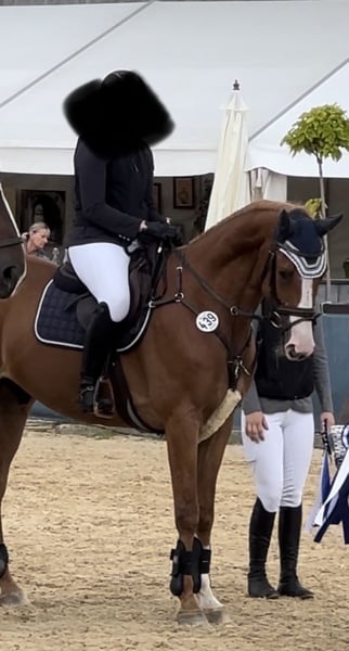 Handsome chestnut gelding, approximately 16.1-16.2 hh. Jumping 1.15 m courses with an amateur rider, but he requires a lot of confidence and security at the jump, so I am not offering him as a show jumper. He is very enjoyable to ride in dressage and daily work, with a good basic dressage level progressing towards L-level. He can perform shoulder-ins, rein-back, and has started work with outward bending. In handling, he is relaxed and easy to love. He loads well, is farrier-friendly, and behaves well under training sessions away from home and in competition conditions. He is familiar with lunging, galloping on the racetrack, and hacking alone or in a group. He can also be ridden with triangle reins by less experienced riders. He is healthy, vaccinated, dewormed, and regularly checked by a physiotherapist. Price negotiable. A brand-new Prestige dressage saddle can be purchased with him. Please contact via private message or WhatsApp.