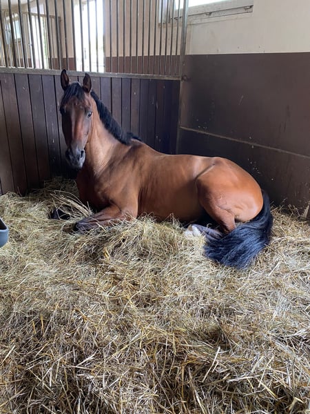Spitzname: Cookie Alter: 10 Jahre Disziplinen: Springen, Dressur, Vielseitigkeit Springen: Ist seine Hauptdisziplin. Im Parcours fühlt er sich sehr wohl und möchte keinen Fehler machen. Hier ist er vor allem in der Klasse L* bis M** Zuhause. Siegreiche Erfolge zeigt er von der Klasse L bis M*, weitere Erfolge bis zur Klasse S*. Dressur: Auf dem Turnier wurde er bis zur Klasse A* vorgestellt und platziert. Im Training zeigt er Lektionen der Klasse L. Zudem lässt er sich sehr leicht arbeiten/ gymnastizieren und macht eine menge Freude in der tgl. Arbeit. Vielseitigkeit: erste Erfahrungen mit Geländehindernissen bis zur Klasse A. Rittigkeit: Ultaco ist sehr fein in der Hilfengebung, leichtrittig, motiviert in der Arbeit und lernwillig. Charakter: Ultaco ist ein sensibles und liebevolles Pferd mit viel Mut und Geist. Im täglichen Umgang zeigt er auch gerne mal seine verspielte Art und bringt einen zum Lachen. Er ist brav im Umgang und unkompliziert beim Schmied oder Transport. Er zeigt sich generell sehr unerschrocken, egal ob in einer neuen Umgebung, auf dem Turnier oder im Gelände (auch wenn man alleine mit ihm unterwegs ist). Haltung: Ultaco ist seit 5 Jahren in meinem Besitz und hatte nur einen Vorbesitzer der ihn direkt vom Züchter gekauft hat Er kenn reine Sommerkoppelhaltung 24/7, Boxenhaltung mit Paddock und tgl. Weidegang von 4 - 8 Stunden, je nach Witterung. Zudem kennt er die Haltung in einer kleinen gemischten Herde. Medizinische Versorgung: Lückenloser Impfpass inkl. Herpes/ Equidenpass vorhanden/ regelmäßige physiotherapeutische Behandlungen, sowie tierärztliche Routineuntersuchungen, wie z.B. Zahnarzt. Eine AKU (April 2020, ohne Befund) ist vorhanden. Ultaco hat eine premium OP Versicherung, welche übernommen werden könnte. Weiteres: Ultaco wurde schonend ausgebildet und zu Beginn seiner Ausbildung bei mir überwiegend ins Gelände geritten. Parallel dazu wurde spielerisch mit der weiteren Springausbildung begonnen. Er kennt neben dem Reiten die Arbeit an der Longe (auch mit Stangen und Cavalettis), Boden- und Handarbeit. Er ist verladefrom und lässt sich zum Training oder aufs Turnier gut alleine fahren und dort betreuen. Besonderes: Für mich gilt, dass Ultaco ein liebevolles Zuhause in einer neuen Familie bekommt, wo sowohl sportliche Ziele als auch das Pferdewohl gleichermaßen wichtig sind. Hierzu zählen für mich ein regelmäßiger Weidegang im Sommer/ Auslauf im Winter, abwechslungsreiche Trainingsmöglichkeiten, sowie eine gute reiterliche Grundausbildung des Reiters. Aufgrund seines sensiblen Charakters ist Ultaco kein Anfängerpferd. Videos sind zum einen auf ClipMyHorse verfügbar und können bei ernsthafter Anfrage versendet werden. Durch meinen anstehenden Urlaubs sind Besichtigung/ Probereiten erst ab dem 22.10.2025 möglich. Zudem wird für ein Probereiten eine Schutzgebühr von 30€ (Springen 50€) erhoben und beginnt für mich mit dem gemeinsamen putzen und satteln des Pferdes.