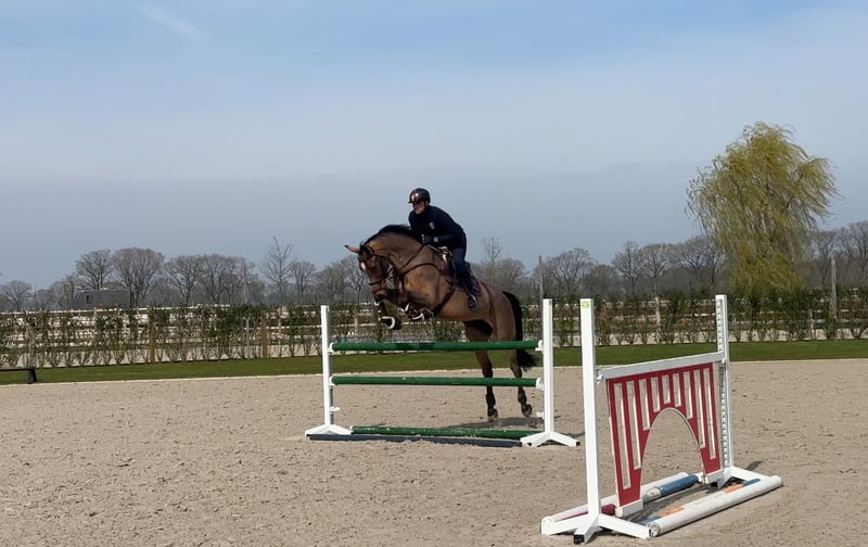 Zabawny, wysportowany i dobrze ułożony koń! To rzadki okaz – ten ogier to prawdziwa frajda! Uczestniczył z powodzeniem w konkursach skoków do wysokości 1,35 m, gdzie wykazuje odwagę, precyzję i dużą skalę skoku. Zdobył dwukrotnie czyste przejazdy podczas swojego pierwszego startu w cross country (1*) w Strzegom w październiku 2025 roku. Łatwy i zrównoważony koń w ujeżdżeniu. Piękna, elegancka głowa, ma wszystko, czego potrzeba! Nie jest polecany dla początkujących, ponieważ jest jeszcze dużym koniem, ale będzie świetny dla amatora lub nastolatka z pewnym doświadczeniem, który chce być bardzo konkurencyjny i odnosić sukcesy w wybranej dyscyplinie! Dobra ocena weterynaryjna i rentgeny