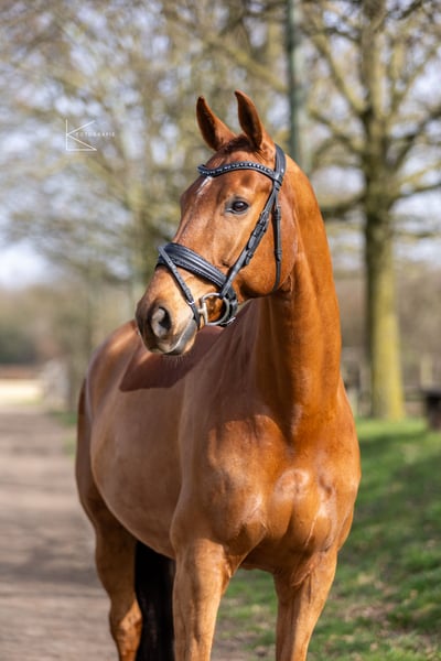 We are seeking a loving companion home for our stunning 11-year-old KWPN gelding (Glock’s Toto Junior x Royal Dance). He is a people-oriented gelding who impresses with his elegant appearance and special presence. Unfortunately, due to osteoarthritis in his cervical spine, he is only limited in his riding ability, which is why we are looking for a place where he can mainly be a horse and have suitable companionship. In box stall housing, he shows clear behavioral issues and does not cope well with this type of accommodation. Therefore, he is preferably to be kept in an open stable or with plenty of turnout and social contact with other horses. Until recently, we regularly exercised the gelding, and he showed no lameness so far. He has not been ridden in the field by us, only handled on the ground. He has been dewormed, is up to date on vaccinations, and has always received veterinary care. His teeth and osteopathic health have been regularly checked, ensuring consistent and thorough health management. Please refrain from arranging a trial ride, as he is currently only limited in his riding ability. The videos and photos are from early March. If you are genuinely interested, we look forward to hearing from you.