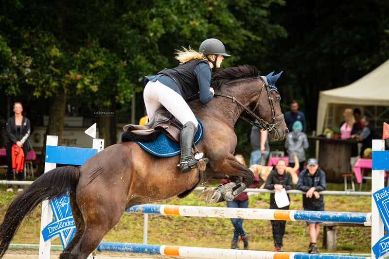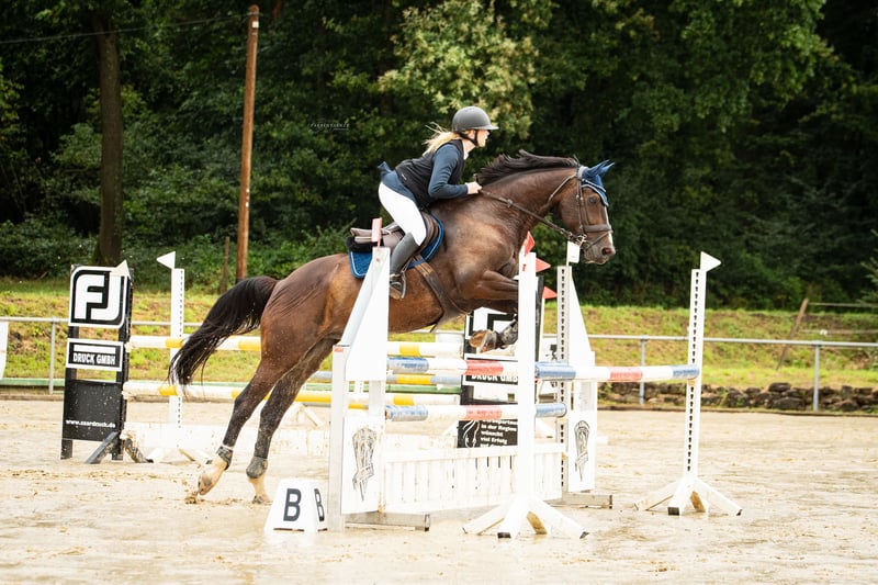Zum Verkauf steht ein talentierter KWPN Wallach, geboren im Jahr 2012. Mit einem Stockmaß von 168 cm und seiner eleganten dunkelbraunen Fellfarbe zieht er alle Blicke auf sich. Dieser Wallach zeigt großes Potenzial im Springen und ist mehrfach A**, L und M* Platziert. Im Parcours lässt er sich gut schnell wenden und will immer auf die andere Seite. Er ist sowohl für erfahrene Reiter als auch für Kinder/Jugendliche, die im Sport weiter kommen möchten geeignet, da er mit seiner Gelassenheit und Sicherheit am Sprung den Reiter unterstützt, Sein freundliches und umgängliches Wesen macht ihn zu einem idealen Partner für Training und Turniere. Er ist brav im Umgang, gut erzogen und hat eine solide Grundausbildung. Er geht brav alleine ins Gelände, brav beim Schmied und beim Verladen. Guter TÜV von 2019 vorhanden. Der Preis ist verhandelbar. Platz vor Preis! Bei Interesse oder für weitere Informationen stehe ich gerne zur Verfügung. Lassen Sie sich diese Gelegenheit nicht entgehen, diesen talentierten Sportpartner kennenzulernen!