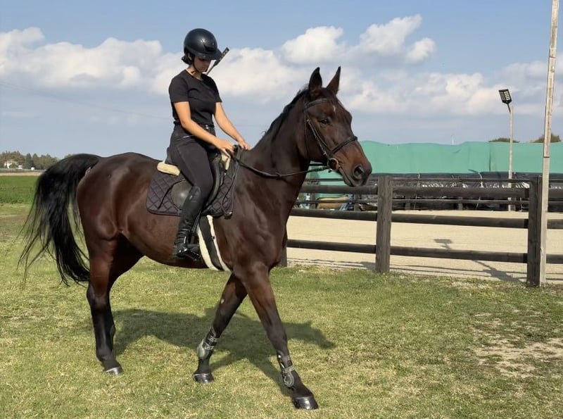 A kind and gentle horse with a cheerful personality, well-suited even for beginners, especially in show jumping. He has experience competing with professionals at 125 cm as well as with beginners at 110/115 cm categories. He is brave and positive in both flatwork and jumping. He gets along well with other horses both in the arena and in paddock group turnout, is in perfect health, and has no negative habits!