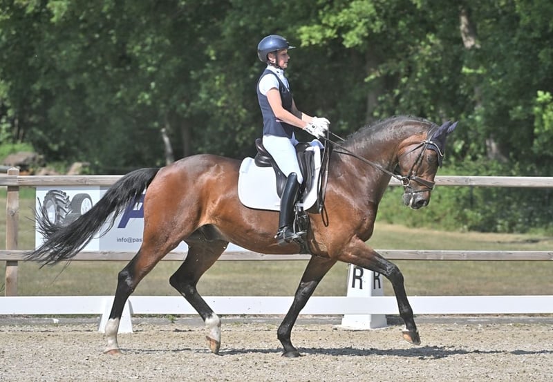 Pferd mit wunderschönem Erscheinungsbild, brav und zuverlässig. Mit viel „Go“ unter dem Sattel. Hat gut in der Lichten Tour (kürzlich gestartet) abgeschnitten, Schwere Tour in Ausbildung. Hat in der Vergangenheit auch 1,10 m gesprungen. Außergewöhnlich brav im Straßenverkehr und im Umgang. Geeignet für einen (Jugend-)Reiter mit etwas Erfahrung, aufgrund seines vorwärts gerichteten Charakters unter dem Sattel nicht für einen Anfänger geeignet. Super gesund (vor 3 Jahren untersucht und für den Sport als gut befunden) und keine Mängel. Natürlich auch brav beim Schmied, Zahnarzt etc. Für weitere Informationen oder ein Video (WhatsApp) bitte Kontakt aufnehmen.