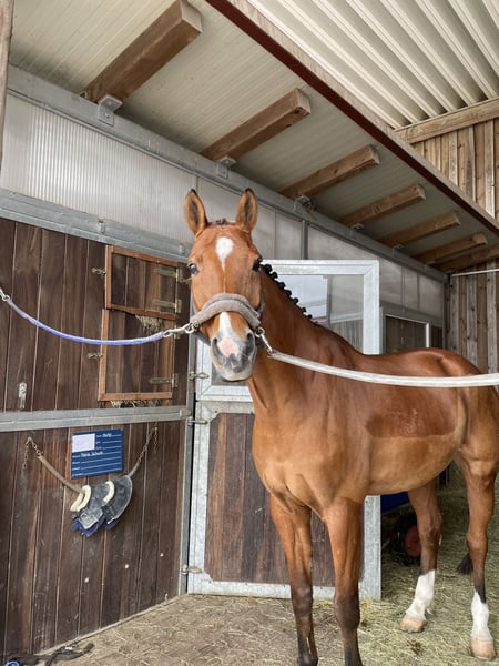 In vendita il mio stallone KWPN di 15 anni, chiamato Felo. È alto circa 165 cm, di colore baio e un vero tesoro nel rapporto con le persone. Felo ha un carattere molto amichevole e giocoso, mantenendo sempre un comportamento corretto. Non è mai cattivo, ma rimane sempre obbediente e calmo. È estremamente compatibile con gli altri cavalli e adora la compagnia – può essere tranquillamente messo con qualsiasi altro cavallo nel paddock. In passeggiata Felo è assolutamente affidabile, sia da solo che in gruppo. È abituato alla museruola e al ferro, e si lascia condurre praticamente in ogni situazione. Anche in circostanze insolite, come durante sfilate o festeggiamenti, rimane rilassato e tranquillo. Sportivamente, è stato piazzato fino a livello L nel salto, con me ha partecipato principalmente a gare di A- e E-Springen. Negli ultimi due anni non è più stato portato in gara, poiché ho perso interesse. Per il salto, richiede un po’ di sicurezza, ma si mostra motivato e desideroso di imparare. In dressage, è piacevole da cavalcare e padroneggia le esercizi più comuni, trovando anche in questa disciplina motivo di gioia. Felo è un cavallo versatile, che ha già esperienza anche nel volteggio, ed è sempre pronto a provare cose nuove. Tuttavia, non desidero cederlo come cavallo da volteggio. Per chi cerca un partner affidabile per il tempo libero, che dia soddisfazione sia in passeggiata che in indoor, è la scelta giusta. La vendita non mi è facile, poiché Felo mi sta molto a cuore. Tuttavia, a causa di cambiamenti nella mia vita privata, ho deciso con grande tristezza di affidarlo a nuove mani amorevoli, dove riceverà l’attenzione e le cure che merita.