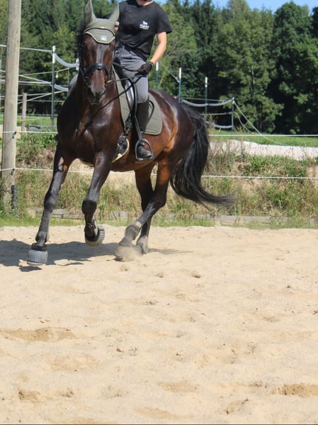 ✨ 17-jähriger Hannoveraner Wallach – zuverlässiger Freizeitpartner sucht neues Zuhause ✨ Manchmal kommt es anders als geplant. Deshalb suchen wir für unseren 17-jährigen Hannoveraner Wallach ein liebevolles und passendes Zuhause. Genaueres gerne über PN. Bei uns wird er 3–4 Mal pro Woche in unserer kleinen Reitschule eingesetzt und zeigt sich dort stets artig, zuverlässig und angenehm zu reiten – auch von Anfängern. Für Longenstunden eignet er sich ebenfalls sehr gut und macht brav mit. STM 1.68 Aufgrund eines früheren Weideunfalls taktet er leicht, was ihn im Freizeitbereich in keiner Weise beeinträchtigt. Für den Sport ist er jedoch eher nicht geeignet. Im Gelände sollte der Reiter etwas Erfahrung mitbringen. Auch wenn bei uns sogar 12-jährige Kinder mit ihm allein ins Gelände gehen, muss man erwähnen, dass er ein kleines „Schönwetterpferd“ ist: Bei stärkerem Wind oder Regen kann er schon einmal erschrecken – aber niemals kopflos, höchstens ein kurzes Zusammenzucken. Haltungsbedingt steht er aktuell tagsüber auf dem Paddock und abends in der Box. Eine reine Zweier-Wallachherde würden wir für ihn nicht empfehlen, da er hier eher nicht so sozial reagiert. Wie er sich in einer größeren Wallachgruppe oder in gemischter Herde verhält, können wir nicht sicher sagen – würden dies für ihn jedoch bevorzugen. Wer ein verlässliches Freizeitpferd sucht, findet in ihm den richtigen Partner. Zubehör kann mit erworben werden. Ein Kennenlernen sowie Probereiten können gern vereinbart werden.