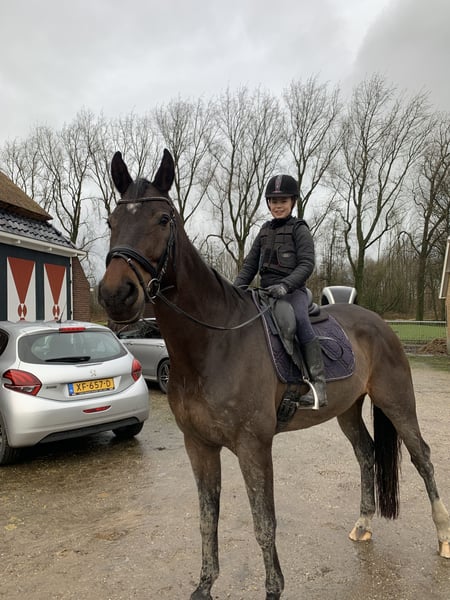 Te koop: Betrouwbare dressuurruin Floyd (v. Lexicon, 2010, 174 cm) Floyd is een echte allrounder met een gouden karakter. In de dressuursport is hij op Z-niveau opgeleid en uitgebracht. Ondanks dat hij de afgelopen twee jaar wat minder op wedstrijd is geweest door studie van amazone, is hij altijd op niveau doorgetraind. Inmiddels is hij weer vaker mee op pad en zet hij nog altijd zijn beste beentje voor. Naast zijn talent in de dressuurring geniet Floyd ook van een sprongetje. Hij is super braaf in de omgang; makkelijk met scheren, tandarts en hoefsmid etc. In de kudde is Floyd vriendelijk en sociaal; hij staat samen met twee merries op de wei. Dankzij zijn nuchtere, betrouwbare karakter is hij ook ideaal voor ruiters die de overstap van pony naar paard maken, zelfs de jongste amazones rijden er zo mee weg. Wij hebben Floyd nu ruim zes jaar met ontzettend veel plezier in ons bezit. We kochten hem destijds zelf als leerpaard, en ik heb in die jaren enorm veel van hem geleerd en genoten. Ik hoop dat zijn nieuwe ruiter/amazone net zo veel van hem mag gaan genieten en leren als ik dat heb gedaan. Kortom: Floyd is een eerlijk, werkwillig en lief paard dat elke dag voor je wil werken en zijn ruiter veel plezier geeft zowel in de ring als thuis. In 2019 klinisch en röntgenologisch goedgekeurd, herkeuren mag k.k. 📍 Regio: Friesland 📞 Meer informatie appen/bellen naar: 0629926344