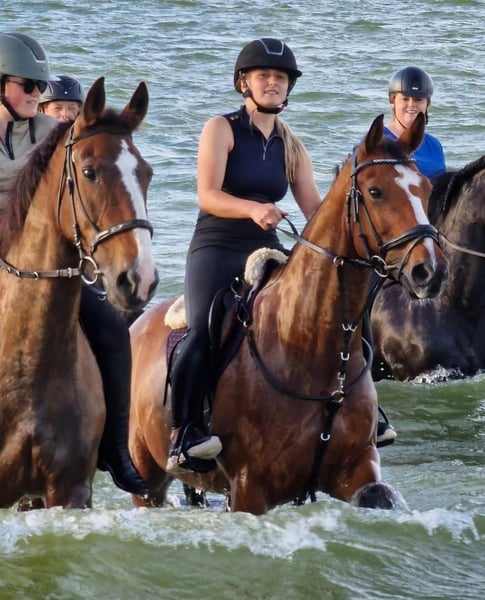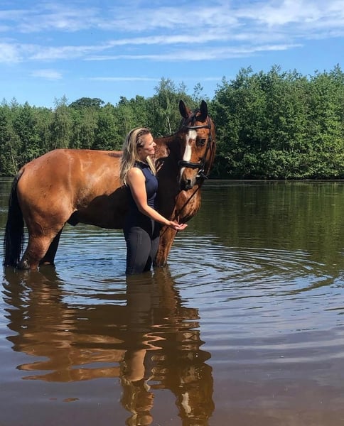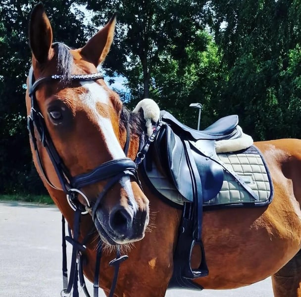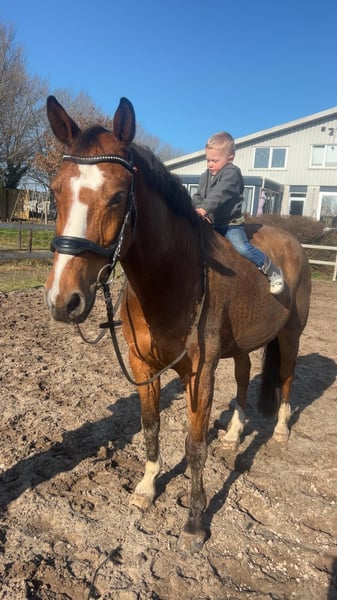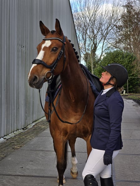 Along with my sister, we are offering our very sweet 16-year-old gelding Eros for sale. Eros has a genuinely kind character and enjoys cuddles, grooming, and attention in general. He also loves working with you, moving out confidently in a good walk, a lovely trot, and a comfortable canter. Currently, we compete Eros in dressage at M1 level, but during our private lessons, we focus on exercises from the Level Z (including simple changes and lateral movements). He picks this up surprisingly well and is eager to think along, accepting the rider’s aids and providing good feedback without being sharp. He is an ideal schoolmaster, but above all, a lifelong friend! Not entirely into dressage? Eros is a sport horse by breeding and can also enjoy jumping. We haven't done much with him in this discipline, but he finds it very enjoyable. His previous owner also competed him in show jumping and eventing competitions. During the day, Eros stays in the paddock with a group of geldings and is stabled at night. In the summer months, they often graze on a piece of land, and in good weather, they stay outside day and night. Eros is easy to handle on the road, in the woods, and is not fazed by heavy traffic. He is also well-behaved in the trailer, with the farrier, and the veterinarian, and has no stable vices. In short, a horse from which someone can learn a lot, compete, and enjoy wonderful forest rides. Due to his gentle and brave nature, Eros is also suitable for a younger rider, for example, transitioning from pony to horse. A true all-rounder for young and old! Videos or any questions, please contact via WhatsApp: 06-37443090