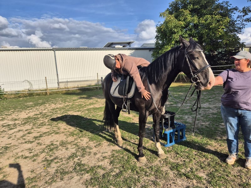 Black Night , genannt Blacky ist ein wunderschöner 3 jähriger Rappwallach der noch voll in seiner Entwicklung steht . Blacky leibr es wenn man mit ihm arbeitet. Er kennt Bodenarbeit , Longe , Spazierengehen und wir haben die ersten Schritte unter dem Reiter begonnen . Er lebt in einer kleinen Herde im Offenstall mit 24/7 Heu. Er ist sehr entspannt , hat tolle bewegungungen und sicher für vieles geeignet.