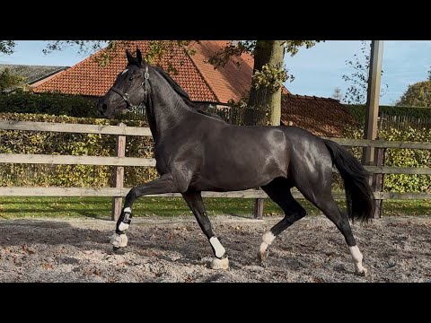 A young top dressage horse with all the qualities and looks for the highest level of sport. A progeny of the top sire Secret, combined with the bloodlines of Negro and Londonderry. Very striking model with a true wow factor! Lots of presence, a beautiful front end, and an expressive head. Moves with three fantastic gaits, combining great looseness with a powerful hind leg and excellent balance. The horse has just come in from the field and has started lunging work. Can be saddle-broken after purchase, in consultation. Very gentle and calm temperament, yet with good willingness to work and the right level of sharpness. Correct conformation, with straight legs and feet. Recently fully examined clinically and radiologically without any remarks. Priced in the higher segment.