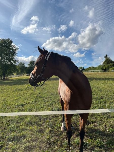 Rolfgang – KWPN-Wallach mit Spitzenabstammung: Wolfgang × I’m Special de Muze Rolfgang ist ein 2021 geborener KWPN-Wallach (1,64 m), der durch seine außergewöhnliche Abstammung und seinen Charakter begeistert. Er stammt ab von Wolfgang (Farn × Eratosthenes xx) – einem der legendärsten Vererber der KWPN-Zucht, dessen Nachkommen bis Grand Prix- und Olympiaerfolge vorweisen können – und aus einer Mutter von I’m Special de Muze (Emerald × Nabab de Rêve), einer der aktuell erfolgreichsten Linien der modernen Springpferdezucht. Diese Verbindung vereint das Beste aus zwei Welten: die klassische Härte, Rittigkeit und Leistungsbereitschaft Wolfgangs mit der modernen Sprungtechnik, Vorsicht und dem Blut des de Muze-Stamms. Rolfgang selbst überzeugt durch seine Menschenbezogenheit und seine beeindruckende Gelassenheit – er geht an allem vorbei, bleibt immer klar im Kopf und zeigt eine natürliche Balance unter dem Reiter. Für sein junges Alter ist er auf Top-Level ausgebildet und kann sofort eingesetzt werden. Ein Pferd für Kenner und Liebhaber, die Qualität, Charakter und Abstammung gleichermaßen schätzen. Dieses Pferd wird ausschließlich in beste Hände verkauft – ein 5-Sterne-Zuhause ist Voraussetzung. Der passende Platz steht dabei ganz klar vor dem Preis.