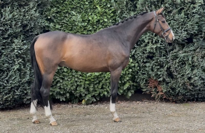 Fantastic 4-year-old gelding. Straightforward, easy to ride, and super well-behaved! 16.1 hh. He is KWPN (Kilian x Krack C) dressage-bred, from a dam line rich in performance horses with many sport horses! This top horse certainly inherited his talent! He shows great potential, moves well, and is already a pleasure to ride! Thanks to his gentle and calm temperament, he is suitable for many riders/amateurs. He is also well-behaved on unfamiliar terrain and easy to load. He is free of stable vices! Oud Gastel, NL 📞 0031-610197456