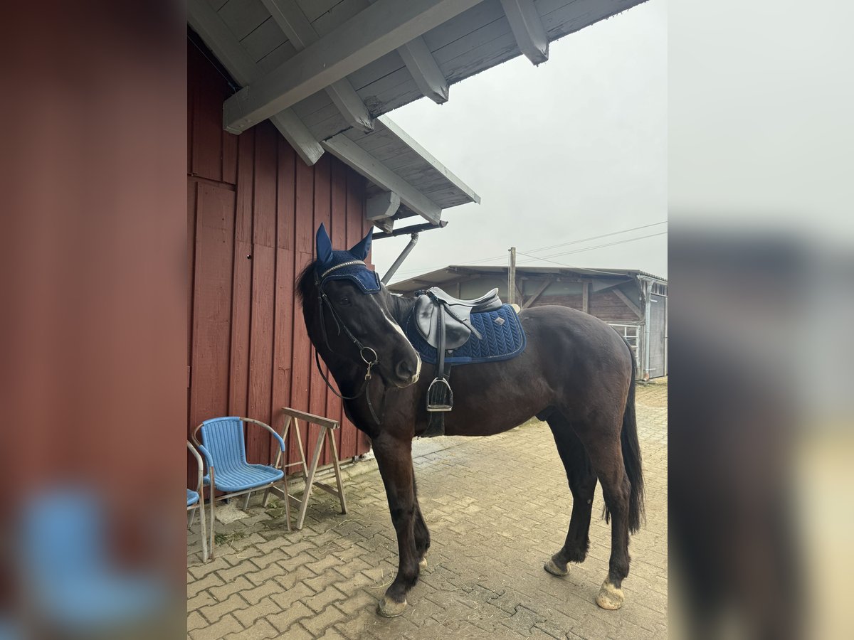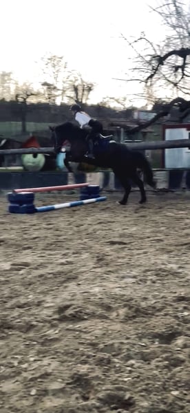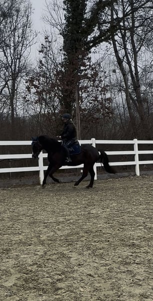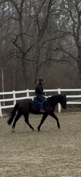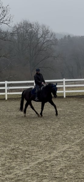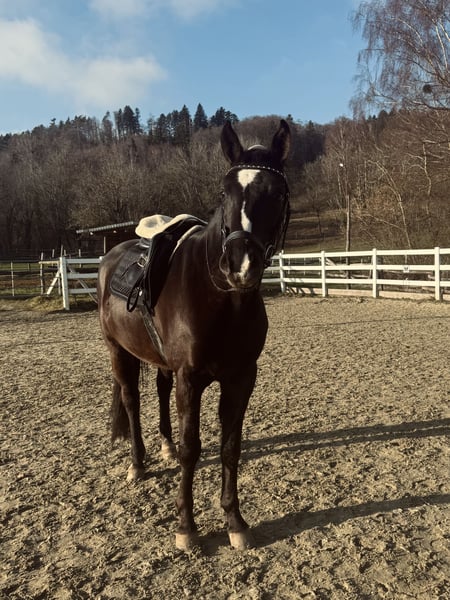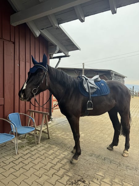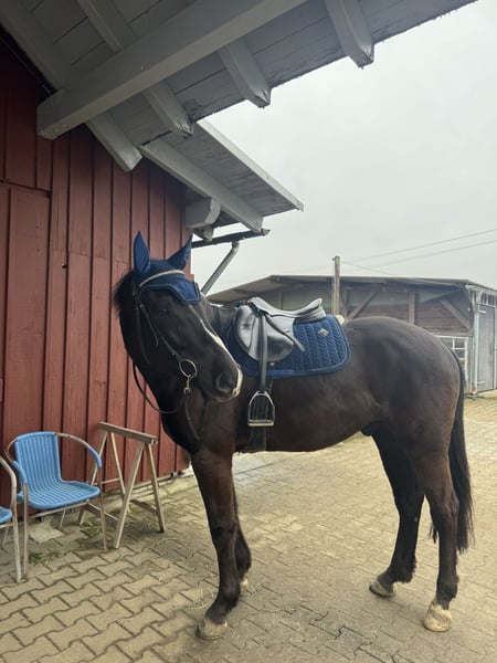Zum Verkauf steht ein auffälliger Rappwallach, geboren Juni 2021, abstammend von Estoril du Cedre x Corland. Qualität, tolle Optik und bester Chrakter vereint in einem Pferd! Er sucht einen tollen Platz in fördernden Händen. Der junge Sportler überzeugt durch seinen einzigartig mutigen Charakter, modernen Typ, einen guten Rahmen bei ca. 1,65 m Stockmaß, einen guten Sprung, einen schönen Trab sowie einen raumgreifenden Galopp. Er wurde Mitte 2025 schonend angeritten und zeigt sich dabei jederzeit brav, rittig und sehr lernwillig. Erste Sprünge unter dem Reiter meistert er souverän und mit viel Übersicht. Sein Freispringen ist von sehr guter Qualität – mit Vermögen, Technik und Einstellung ausgestattet. Besonders hervorzuheben ist sein wundervoller Charakter, der ihn auch sehr amateurtauglich macht: - unkompliziert und ultra unerschrocken im täglichen Umgang - auch nach Pausen stets brav - problemlos ohne Sattel zu reiten - absolut unbeeindruckt von neuen Umgebungen, Hunden, Schafen, Kühen, Hühnern, Lärm, Gelassenheitsparcour o.ä - hat bereits kleine Geländerunden allein absolviert Er wäre eventuell auch als Hunter interessant, da er mit seinen schönen Grundgangarten, einem flüssigem, gutem Sprungablauf und einem ansprechenden Körperbau ausgestattet ist. Dazu ist er noch bildhübsch und bringt einen ausgeglichenen Charakter ohne Hektik mit. Aktuelle, Röntgenbilder ohne Befund aus Dezember 2024 liegen vor. Ein qualitätsvolles Nachwuchspferd für den sportlichen Anspruch oder ein talentiertes Jungpferd mit Perspektive für den ambitionierten Amateur sowie gehobenen Springsport. Videos von allem möglichen versende ich bei ernsthaftem Interesse gerne :) Er muss nicht weg, ich habe selbst jedoch keine besonders hohen Ambitionen im Springsport, sondern habe den Fokus auf der Ausbildung, einer guten rundum Basis und liebe Projekte in die ich viel Zeit stecke und sehr gewissenhaft arbeite. Aus diesem Grund habe ich jegliche Arbeit vom Boden bis zum ersten Aufsitzen, selbst gemacht, danach war er beim Profi und ist seit Oktober wieder bei mir und wird von mir weiter reiterlich ausgebildet. So langsam ist mein kleiner aber bereit, in fördernde Hände auszuziehen, da ich selbst, ihn im Springsport, nicht wirklich fördern könnte :)