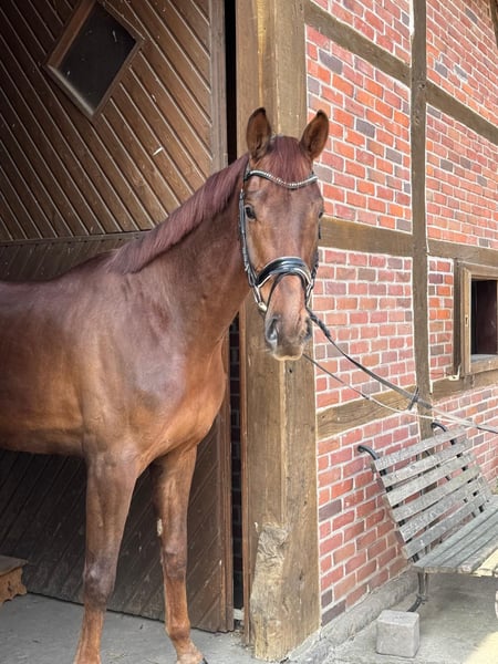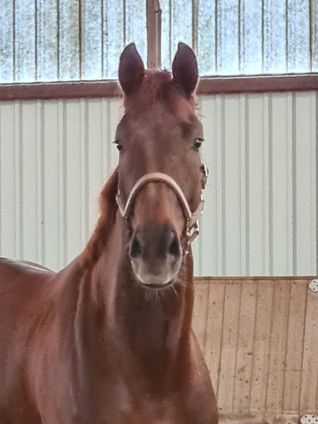 Expressive 4-year-old dark chestnut gelding Three very good basic gaits: a ground-covering walk, a lively trot, and an uphill canter. X-rays are clear, including back and neck. For more information, please call 01752447212.