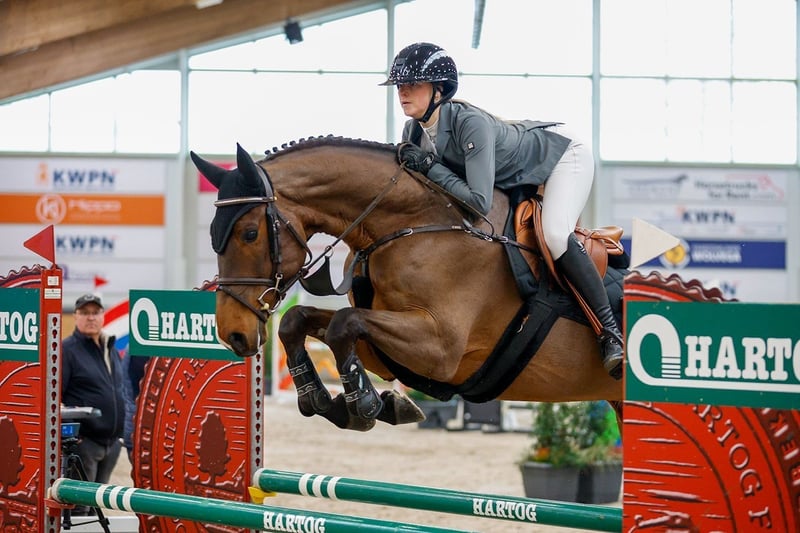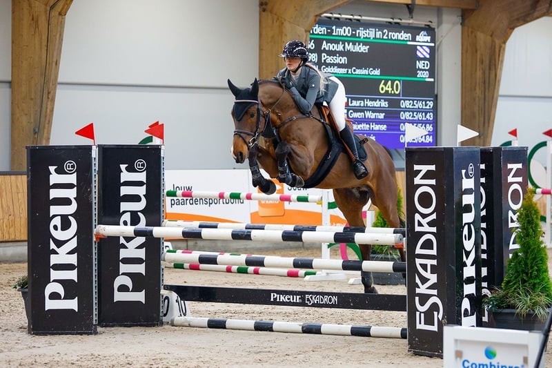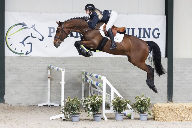 This Passion has made a promising start in sport and is the result of a proven combination. Dam Hollyjumper has already produced three offspring by Golddigger, including the eight-year-old, international 1.45m-level performing showjumper Nozem of Natalie Kovarova and the international 1.30m-level jumper Mr. Gold. The AES-approved stallion Lucky Gold, who performs at 1.35m-level, is also a full brother to this Passion. Sire Golddigger himself jumped at 1.45m-level with Conor Drain and, from a limited number of offspring, has already produced notable jumpers. Granddam Estapourt is a half-sister to the international 1.40/1.45m-level horses Apourti (s.Quinar) and Casapourti (s.Veron).