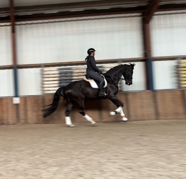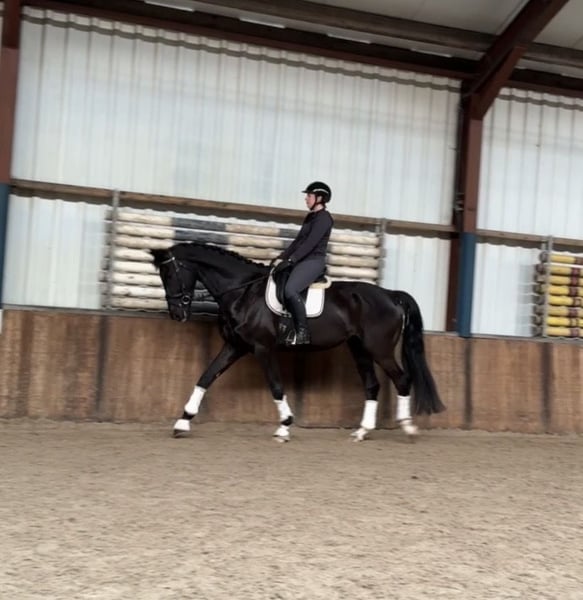 Joli et très gentil cheval de 6 ans ! KWPN par Livius, 1,77 m Cheval agréable avec la bonne attitude. S’adapte facilement ! Convient à de nombreux cavaliers. Ne regarde rien, ni en carrière ni en extérieur. Actuellement en entraînement au niveau L, il bénéficie du temps nécessaire pour devenir plus fort et plus rempli. Cheval très fiable, peu sensible. Peut également se déplacer agréablement et possède un bon potentiel. À l’écurie, il est joueur et recherche volontiers la compagnie des humains. Très calme au pansage, au lavage et en main. Monte aussi facilement dans le van. Correct, en bonne santé, sans défauts de box. Oud Gastel, NL ☎️ 06-10197456