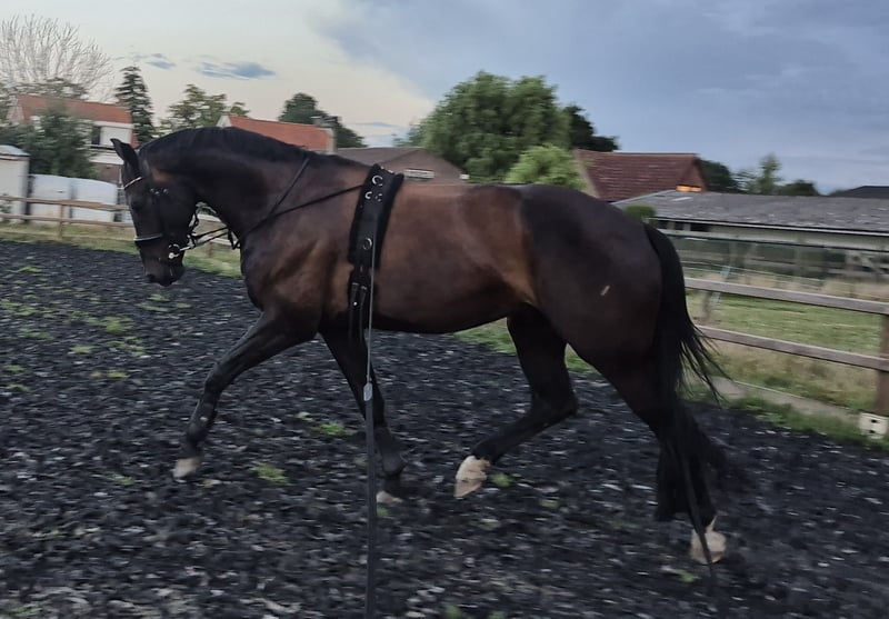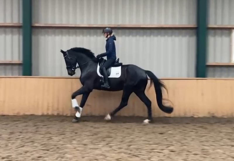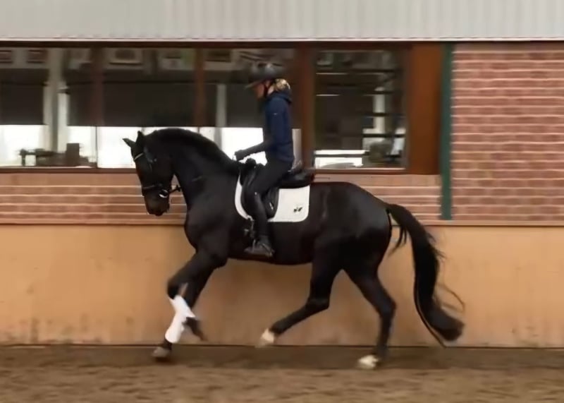 Hoch talentierter siebenjähriger Wallach zu verkaufen, Sohn von Ferro x Tuschinski. Er stammt von der Grand-Prix-Merrie Anne ab und ist Vollbruder des Hengstes Ironman, der auf internationalem Grand-Prix-Niveau vorgestellt wird. Im Umgang und auf dem Paddock ist er sehr lieb und ruhig und liebt Aufmerksamkeit. In ungewohnten Situationen kann er jedoch nervös werden. Er ist außergewöhnlich gut im Galoppieren und zeigt großes Talent für höhere Dressurarbeit, mit einem enorm aktiven Hinterbein. Unter dem Sattel ist er jedoch sensibel (nicht schreckhaft) und daher nur für einen erfahrenen, selbstbewussten Reiter geeignet. Das ist auch der Grund für den Verkauf, da ich selbst zu unsicher/bang bin und daher keine passende Partnerschaft sehe. Er wurde noch nicht im Wettkampf eingesetzt. Vor einem Jahr wurde er vollständig klinisch und röntgentechnisch untersucht und ohne Befund freigegeben. Derzeit befindet er sich im Training in Etten-Leur, dort sind auch Besichtigungen möglich.