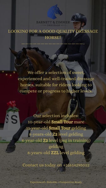 🎄For Sale🎄 9 years old gelding (2017) by Hennessy x Mettal ✨ In just a few months Mojito went from knowing only some basics to doing halfpasses and changes 🫶🏼! A really clever guy! He has always been kept by the owner as a hobby horse so without any ambition to show. He is fully vetted and healthy! Measures around 167CM! He can be yours! For more info please WhatsApp +31614295022 🎁 @barnettzimmerdressage