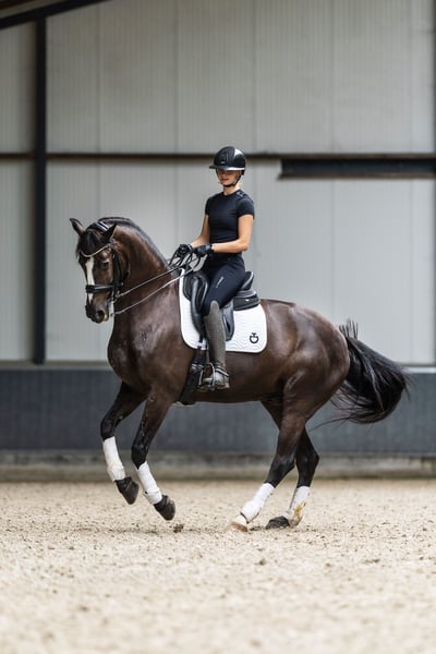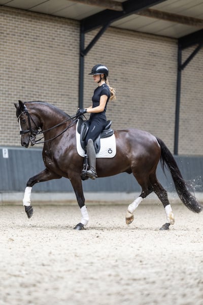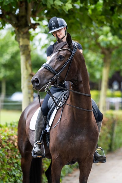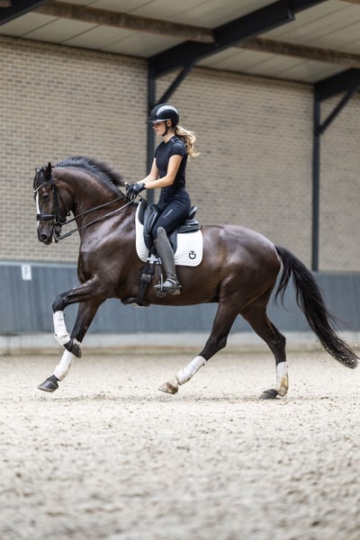 Madagascar is een zeer aansprekende 9-jarige zwarte ruin van Wynton x Sir Bredo met een stokmaat van circa 1.70 m. Een paard met uitstraling, kwaliteit en een fijne, werkwillige instelling. Hij is ZZ-Zwaar geklasseerd en recent succesvol HC gestart in de Young Riders-klasse. Madagascar toont veel aanleg voor het verzamelde werk en beschikt over de kwaliteit om met de juiste ruiter verder door te groeien. • Zeer werkwillig en meedenkend • Laat al een goede piaffe en passage opvallend gemakkelijk zien • Makkelijke aanleuning, niet sterk • Eerlijk en betrouwbaar in het werk • Braaf op wedstrijd en op vreemd terrein Madagascar is een ideaal paard voor een jeugd ruiter die wil beginnen bij de junioren en wil doorgroeien naar Young Riders / U25, maar ook zeer geschikt voor een ambitieuze ruiter of professional die op zoek is naar een talentvol en fijn te rijden paard met potentie voor de hogere sport. Braaf en makkelijk in de dagelijkse omgang Makkelijk bij de hoefsmid Video's op aanvraag via Whatsapp 🩺 Klinisch en röntgenologisch goedgekeurd, inclusief hals en rug 🔁 Herkeuren toegestaan 📍 Gelegen in Nederland Hogere Prijsklasse ☎️ +31 6 54790009