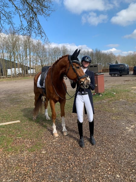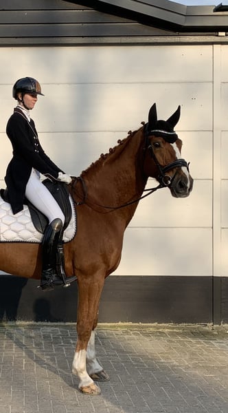 Our wonderful, sweet, and reliable Gregje. Gregor is 9 years old, 172 cm tall, and a true cuddle bear. He loves cuddling, grooming, and attention. Gregor has nearly won everything there is to win in his category. He knows all the exercises and is a real professor. He is very pleasant and light to ride, also responsive to the aids. If you're looking for a pasture mate who can also enjoy occasional nice rides and still has a lot to teach, Gregje is the horse for you. Videos available. He can be turned out in the field with any other horse, pony, or Shetland. Easy to load and farrier-friendly. In other words, no fuss. He is fantastic. Gregor competes in Intermediaire I (light tour) and has won numerous championships. He is now being offered because competitions cause him a lot of stress, leading to the development of stomach ulcers. He also has a hernia. He will only go to a home where he can be with his kindred spirits and not be pushed into full competitive sport. A few local competitions are no problem, but we no longer want to pursue a top-level sports career with him. The home or place where he goes is more important than the price. He will only go to the right person!