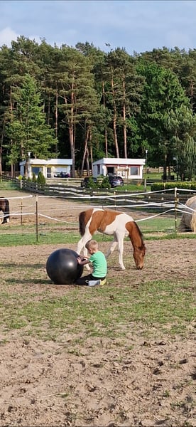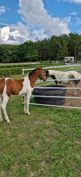 Hay, Ich bin die mega neugierige und verschmuste Maluc, geboren am 08.04.25 und wohne aktuell auf der Insel Usedom. Mein Papa ist ein eingetragener Fuchs-Schecke Lewitzer Zuchthengst aus MV und meine Mama eine Lewitzer-Stute mit bissl Pinto-Mix (beide mit Pass). Ich bekomme in den nächsten Tagen auch noch einen grünen Pass. Ich kenne den Hufschmied, andere Vierbeiner jeglicher Art und auch die mit zwei Beinen, die mich verwöhnen und begrabbeln.. Ich liebe es, angefasst zu werden und genieße da jeden Moment. Auch kann man allen Quatsch mit mir machen. Ich kenne Decken, Halfter und allgemein das Fohlen-ABC beherrsche ich schon ganz gut. Meine Mama ist den ganzen Tag noch bei mir, aber langsam muss und darf ich in die weite Welt hinaus. Ich kenne Weide, Heu, Futter aus der Schale und den Stall. Hänger bin ich auch schon gefahren. Wenn ich dein Interesse geweckt habe, dann melde dich gerne bei mir 🥰 würde mich freuen. Herzlichste Grüße Maluc mit der Mama Cindy und unserer Möhrengeberin Jessy