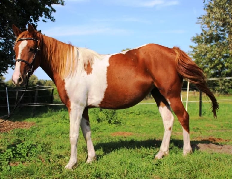 ✨ 3-jährige Lewitzer Stute zu verkaufen ✨ Da unsere Tochter doch kein Interesse am Reiten hat, suchen wir für diese tolle junge Stute ein neues Zuhause. Sie ist aufgeweckt und neugierig, liebt aber genauso ihre Kuscheleinheiten. Aufgrund ihres Alters ist sie jedoch noch kein reines Kinderpony, kennt aber den Umgang mit Kindern – ein kleiner, ponytypischer Dickkopf ist vorhanden und sie hat noch vieles zu lernen. Daten & Ausbildungsstand: -Alter: 3 Jahre - Farbe: Fuchs-Schecke -Stockmaß: aktuell ca. 1,44 m (hinten gerade leicht überbaut) -Bisher nur leicht anlongiert; Longiergurt, Pad und Trense kennt sie -wird daher aber als roh abgegeben -Haltung: altersgemischte Stutenherde, Offenstall mit Weidezelten, ganzjährig draußen -Regelmäßig geimpft & Hufpflege -Anhängerfahren problemlos Abstammung: Mutter: Princess Mabel (v. Pit / Peter I; Urban) Vater: Granit (Grandy, Bundesprämiensiegerhengst x St. Pr. Giny von Shamani) Beide Elterntiere können bei uns auf dem Hof besichtigt werden Wer Lust hat, dieses charmante Jungstute zu fördern, ist herzlich eingeladen, vorbeizukommen, sie kennenzulernen – und sich direkt zu verlieben. Infos & Fragen gerne telefonisch oder per WhatsApp: 0176 – 78879276