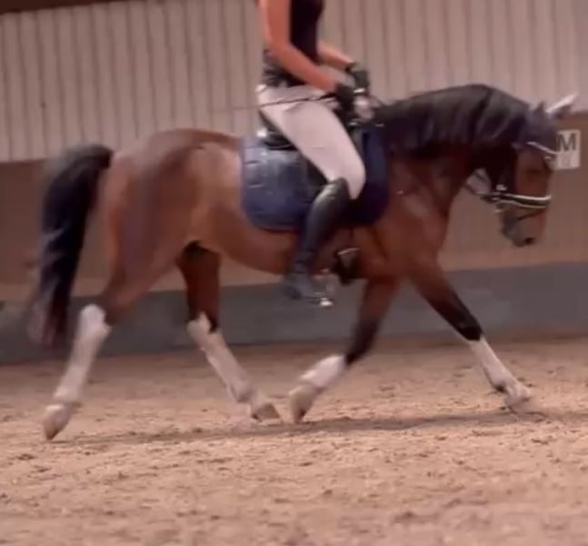 We are reluctantly selling our dear pony gelding Yakari • Age: 11 years • Height: approx. 1.20 m • Disciplines: Dressage / Jumping and Leisure Yakari is an absolutely lovable and child-friendly pony companion. He has been successfully presented at various competitions and has already won several gold ribbons. He has competed in classes ranging from lead rein to dressage class E. He also enjoys jumping at home with enthusiasm and good behavior. For children, Yakari is a great partner: he can be easily ridden by the smallest ones, is patient and well-balanced. Of course, he also has a bit of a stubborn streak, as is typical for a real pony, which only makes him more charming. He is also up for any fun – whether it's Christmas riding, small circus lessons with streamers, or other colorful activities. • He is barefoot • Shoeing and loading friendly • Loads easily into the trailer, even by children • Remains calm and unflappable in all situations Yakari is familiar with both pasture and box housing and currently lives in a large herd. He generally gets along well with others but can occasionally show a more spirited side. It happens that he may kick out at other horses – therefore, he will be presented with a red ribbon at competitions for safety reasons. However, he remains absolutely reliable with people. We hope to find a loving home for Yakari, preferably with children who enjoy competing or simply seek a dependable leisure partner. For a trial ride, we charge €30, which will be deducted from the purchase price.