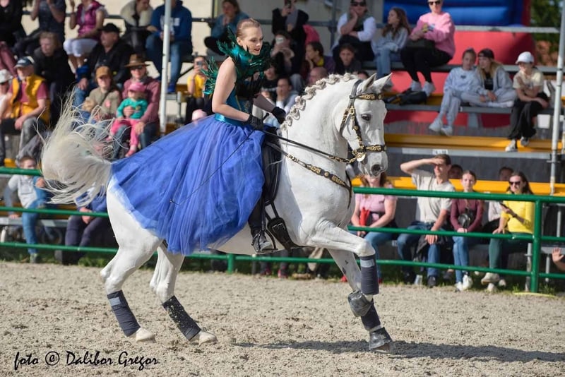 Siglavy is a 12-year-old Lipizzaner gelding with extraordinary movement. Standing at 16.1 hh, he is a true artistic horse and an exceptional model for photography. Sigi is highly experienced and performs elements such as piaffe, passage, pirouettes at canter, lateral movements, leg changes, Spanish walk, and even lying down. He works freely in liberty and knows many tricks, including rearing, bowing, sitting, lying down, Spanish walk, and balancing exercises. This gelding is an ideal partner for both experienced riders and those just beginning their dressage or liberty training journey. This white gelding fulfills the dream of owning a truly special horse. He is beautiful, friendly, and calm in all activities, including turnout, shoeing, tacking up, transport, and riding in the fields. Location: Podkarpackie Voivodeship Piro-free Current X-rays available For more information, please contact me via WhatsApp at 0048609466153.