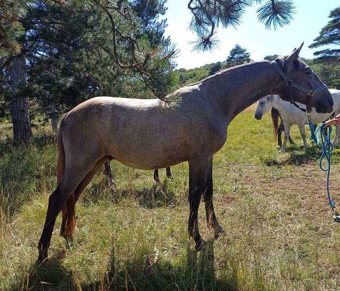342 Maestoso Trompeta XLVI – 2023 Lipizzaner gelding with an exceptional character and classic type Maestoso Trompeta XLVI, born in April 2023 – a gelding that reflects the values of our breeding program in every respect. Pedigree: Mother: 571 Trompeta XLVI (Lipica) Father: 426 Maestoso Gratiosa II (Lipica) Current height: 154 cm (expected final height approx. 160 cm) This young Lipizzaner impresses with his noble, classic type, a correct foundation, and – most importantly – an exceptionally sweet and people-oriented character. Calm, friendly, and very uncomplicated in daily handling, he is an ideal partner for sports, leisure, or the whole family. ✨ What makes him special: - Bred and raised with a focus on character, correctness, and health - Accustomed to daily grooming, box-paddock system, and 24/7 herd living - Naturally balanced movement with good physical development - Healthy and regularly dewormed - Half-brother can be viewed in our herd He is growing up in a dynamic herd with plenty of movement and social contacts – the best foundation for stable physical and mental development. Whether as a future riding partner, driving horse, or simply as a loyal friend – Maestoso Trompeta XLVI is definitely worth a look. Additional videos available upon request Vet check and transport can be organized For more information: info@jjlipizzans.com WhatsApp: +386 68 180 573