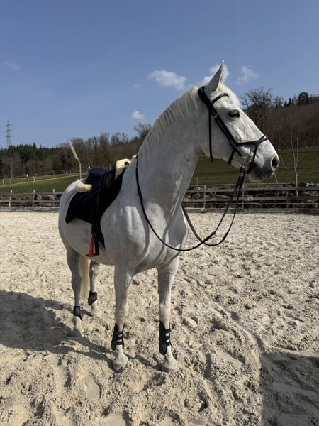 Mein wundervoller, reinrassiger Lipizzaner-Wallach "Conversano Vércse", geboren am 16.04.2018, Stockmaß ca. 160 cm, sucht ein neues Zuhause. Er ist ein traumhafter Schimmel mit viel Ausstrahlung, einem grossen Herzen und einem ganz besonderen Charakter. Er ist für mich nicht einfach nur ein Pferd, sondern ein echter Partner. Umso wichtiger ist mir, dass er nur in ein absolutes 5-Sterne-Zuhause kommt, wo er genauso geschätzt, geliebt und gefördert wird, wie er es verdient. Charakterlich ist er ein absoluter Schatz: ruhig, ausgeglichen, menschenbezogen und ehrlich. Im Umgang ist er sehr brav und aufmerksam. Aufgrund seines tollen Wesens wird er auch problemlos von Anfängern geritten und begeht keinen falschen Schritt. Trotzdem braucht er einen erfahrenen Reiter, wo ihn reell arbeitet um ihn langfristig Gesund zu erhalten. In der Dressur steht er sicher auf A-Niveau und zeigt bereits erste Lektionen der Klasse L. Seitengänge wie Schulterherein im Schritt und Trab sind ihm vertraut und er arbeitet motiviert und lernwillig mit. Aktuell lernt er den Galoppwechsel, vom Boden aus und unter dem Reiter. Auch im Springen zeigt er sich ehrlich, willig und mit viel Freude an der Arbeit und meistert mit Reiter 80 cm, frei sprang er bisher bis 1 m. Ein ganz besonderes Highlight ist seine Begeisterung für Bodenarbeit und Freiheitsarbeit. Hier zeigt er sich als echter Künstler und arbeitet mit viel Ausdruck und Freude. Zu seinem Repertoire gehören unter anderem: Freies Zirkeln, Spanischer Schritt, Seitengänge (In and Out), Rückwärts, Einparkieren, Steigen auf Kommando – auch mit Reiter und weiteres wie zb. Galoppwechsel sind wir gerade am üben. Diese Lektionen führt er zuverlässig aus und macht damit nicht nur im Training, sondern auch beim Zuschauen unglaublich viel Freude. Er ist gesund, steht in sehr gutem körperlichen und muskulären Zustand und ist ein vielseitiger Partner, der seinem Menschen sowohl in der Dressur, in der Bodenarbeit als auch im täglichen Umgang sehr viel zurückgibt - einfach ein richtiger Allrounder. Ich wünsche mir für ihn einen Menschen, der seine besondere Art zu schätzen weiss und ihm weiterhin Zeit, Aufmerksamkeit und Förderung schenkt. Ein Platz, an dem er Teil der Familie sein darf. Coni ist korrekt geimpft und entwurmt, Hufschmied und Verladefrom und hat keinerlei Unarten unter dem Sattel. Er schlägt nicht, beisst nicht. Hat auch keinerlei Verhaltensauffälligkeiten wie Koppen, Weben, Sattelzwang, ect. Coni kennt auch das Laufband und Führanlage und benimmt sich auch da sehr vorbildlich und anständig. Standort: Baselland Bei ernsthaftem Interesse erzähle ich gerne mehr über ihn und sende Fotos oder Videos zu. Ebenso Preis auf Anfrage. Es besteht durchaus auch die Möglichkeit ihn ans Futter zu übernehmen. Ein persönliches Kennenlernen ist selbstverständlich möglich.