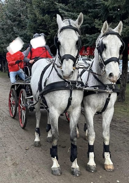 For more information, please contact me on WHATSAPP (0036306800863) or in email (hajagosn92@gmail.com) -160-163cm -7 and 8 years -talented pair -cooperative and reliable horses -easy to handle them -reliable in traffic and also on the fields