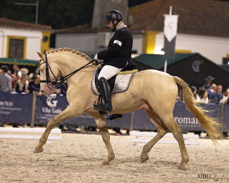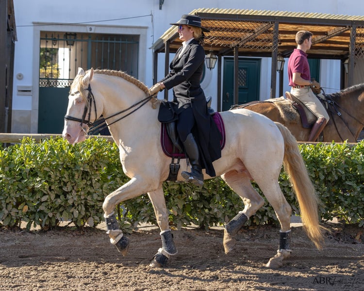 2015 1.68 Cremello APSL approved Lusitano stallion schooling some GP elements. NOW AVAILABLE TO LEASE OR PARTNER! YOUNG PRO OR YR BIG OPPORTUNITY! Contact me to discuss terms. For someone who needs a sponsored horse, for a fraction of what it costs to purchase a competition horse. Absolutely wonderful horse now available to a super home. Lotus was approved as a 4 yr old and he has competed a bit in local stallion shows, Golega twice, and a proven breeding stallion. All his kids are tall buckskins or 1 cremello mare, big-moving and under saddle now, showing and going! With super minds for amateurs and juniors. Great horses. Lotus--Shows good power in piaffe, good sit in pirouettes, he's easy and fun. Gorgeous head, eye, neck, topline. He has perfect conformation, good bone, excellent feet Earthquake proof, zero spook, very honest horse. He knows he's a breeding stallion. Looking for a great match as we've had him since he was 3 yrs old. And I like to match up my horses. Perfect for good AA, YR or Jr. Even a partner who's a rider, who maybe you need a good show horse, contact me and we start a conversation. I'm willing to have him go to a super rider in Europe, to show him more for another year or 2. Partner or investor. Also a lifetime guarantee on our horses. We know him, he vets squeaky clean, and if buyer is ever not 100% satisfied at any time in his life just ship him back to me in Europe. This video is a compilation for breeders. New video ASAP. Breeding fee 800€. Bred by Serra Neves, ridden by Rafa Bastos. Website www.wildernessfarmdressagesales.com