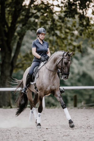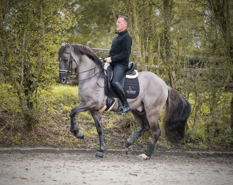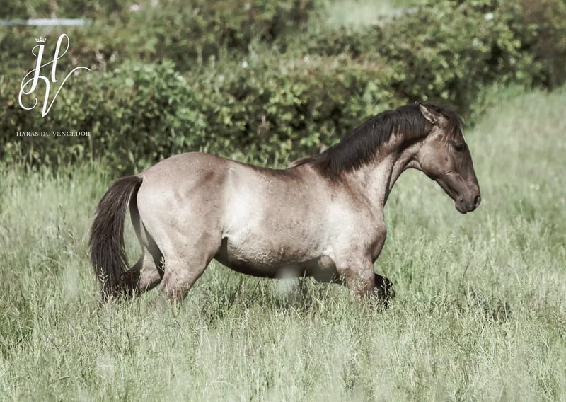 PIRO LIBRE ! Homozygous Dun + Hétérozygous Crème Une rareté mondiale absolue est mise en vente : I-Don Malagueno est le seul étalon Dun pur-sang qui a été approuvé pour le Hengstbuch 1 Oldenburger (grâce à ses succès sportifs en dressage). Il est également approuvé pour le livre des étalons 1 Deutsches Pferd (ZfdP), Palomino, Deutsches Barockpferd, Pinto et bien sûr approuvé par l'APSL. Il apporte ainsi la rare couleur DUN avec un papier d'élevage complet à l'élevage de chevaux de sang. De plus, il possède 1 gène CREME, ce qui permet une nouvelle chance d'éclaircissement dans l'élevage de la race Warmbut. Un étalon qui ne convainc pas seulement par sa beauté unique et sa génétique de couleur. Il est vainqueur en St. Georg, formé en Allemagne jusqu'en S** avec un piaffer remarquable et un très bon pas. Il est en outre formé en Working Equitation jusqu'en Master Class et saute remarquablement bien. Très fin à la main avec un go agréable. Il est très confortable en selle. Il connaît également les balades décontractées, le travail à la double longe et aux rênes longues ainsi que les sauts de concours complet. Un vrai cheval polyvalent. Un professionnel de l'élevage. Très motivé et brave au fantôme avec une qualité de semence top. Ses poulains convainquent dans le monde entier par leurs articulations fortes, leur charme et leur proximité avec l'homme. Génétique de la robe : DD/Ee/Crn/aa Exempt de PSSM 1 & 2, WFFS, ECVM, très bonnes radiographies disponibles. Suite à des changements professionnels de ma part, il est à vendre pour la bonne place. Il est le choix parfait pour un élevage ambitieux qui a également du plaisir à avoir un cheval de sport bien monté avec un grand fan club. Son site web : www.oharlin-sb.com